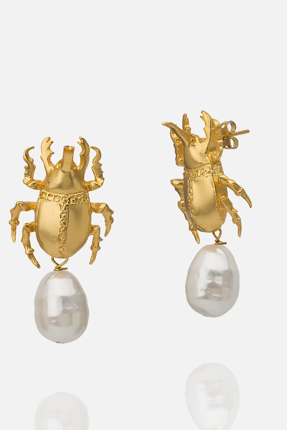 BEETLE GOLD PLATED EARRINGS - PEARL