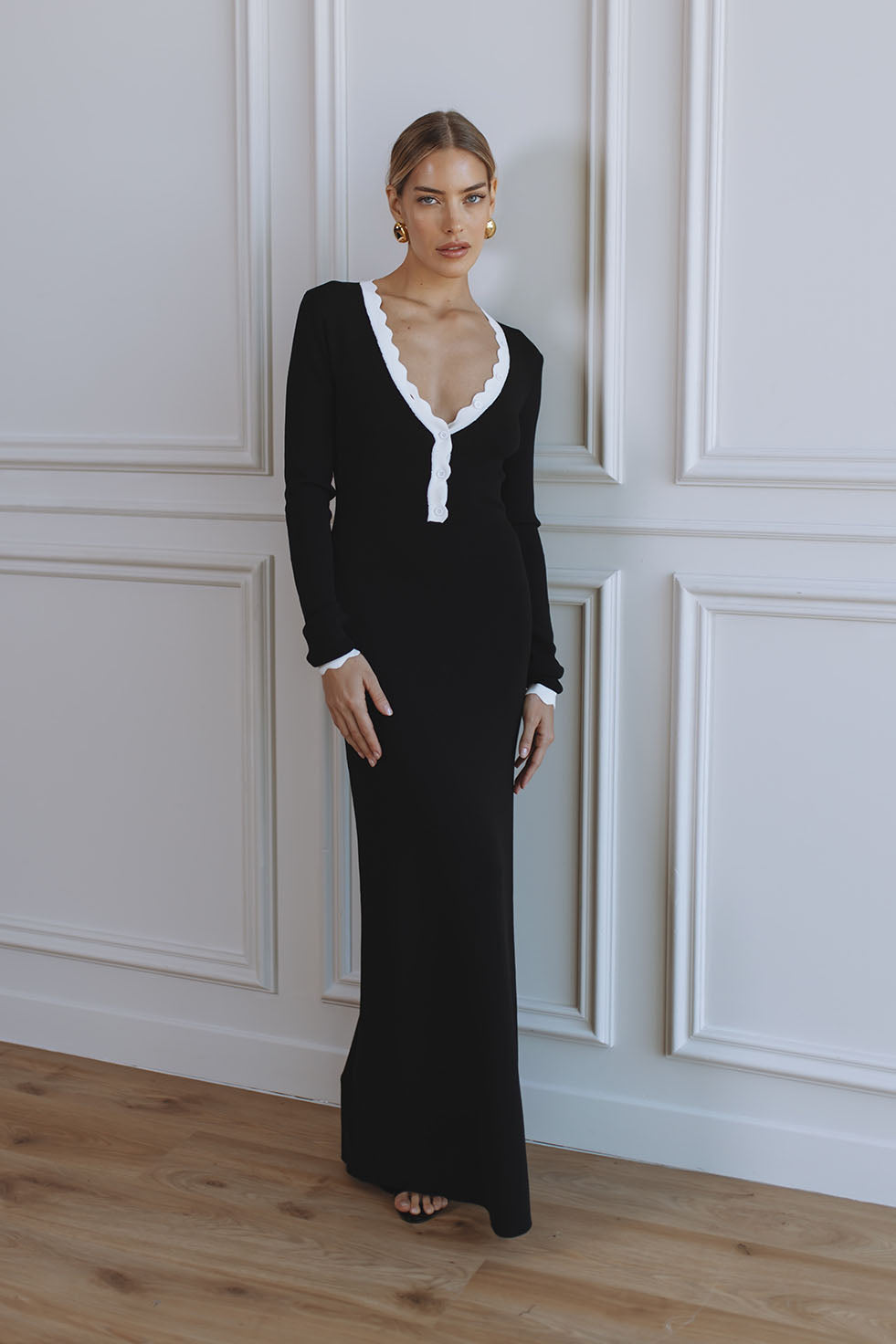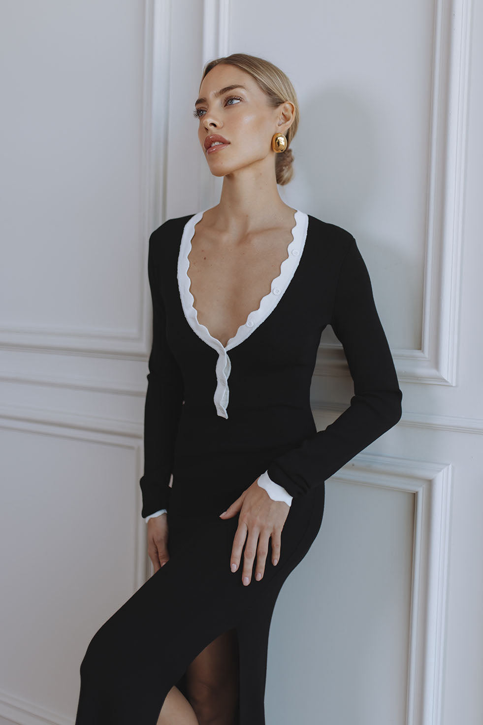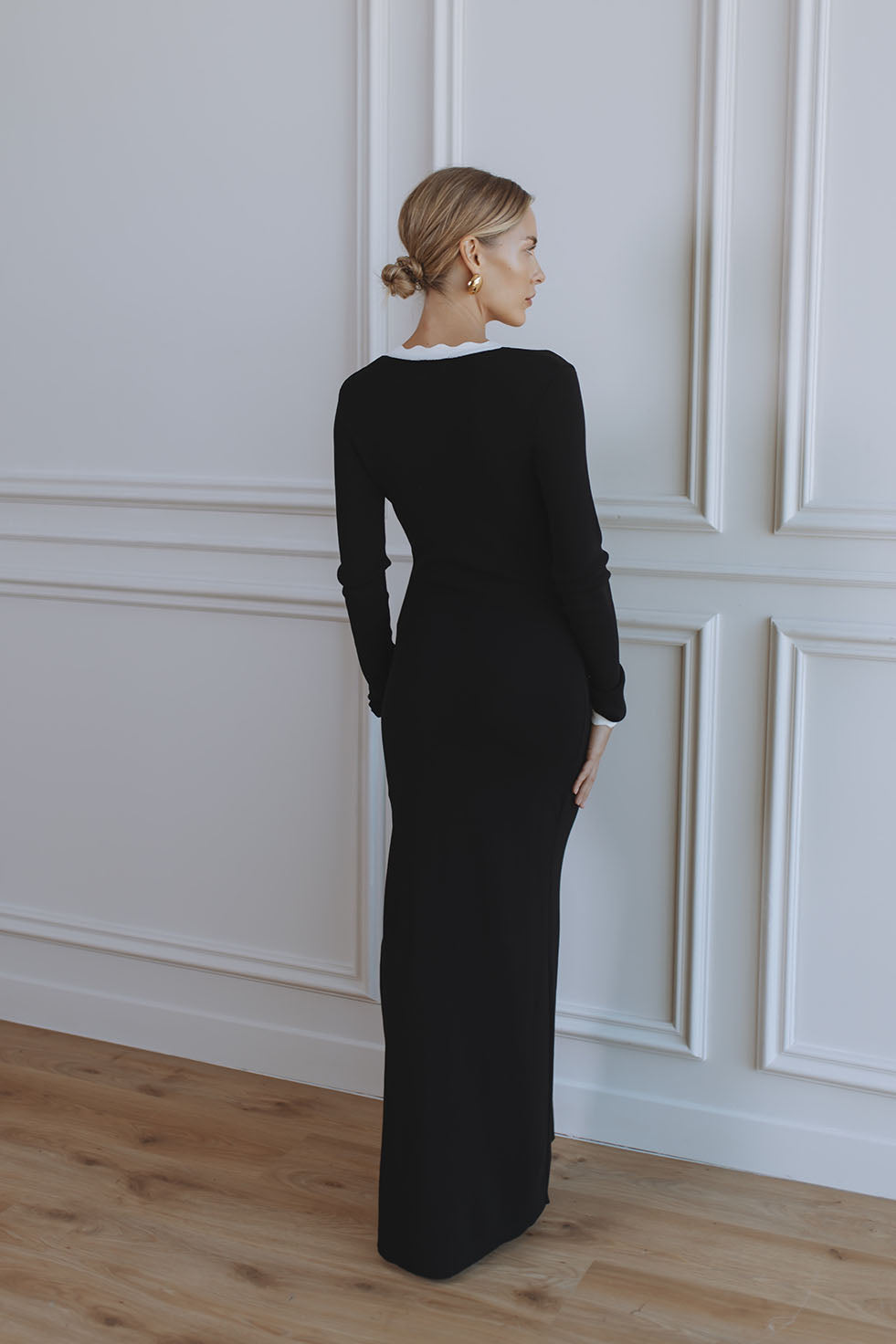 MILENIA SLEEVED KNIT MIDI DRESS - BLACK