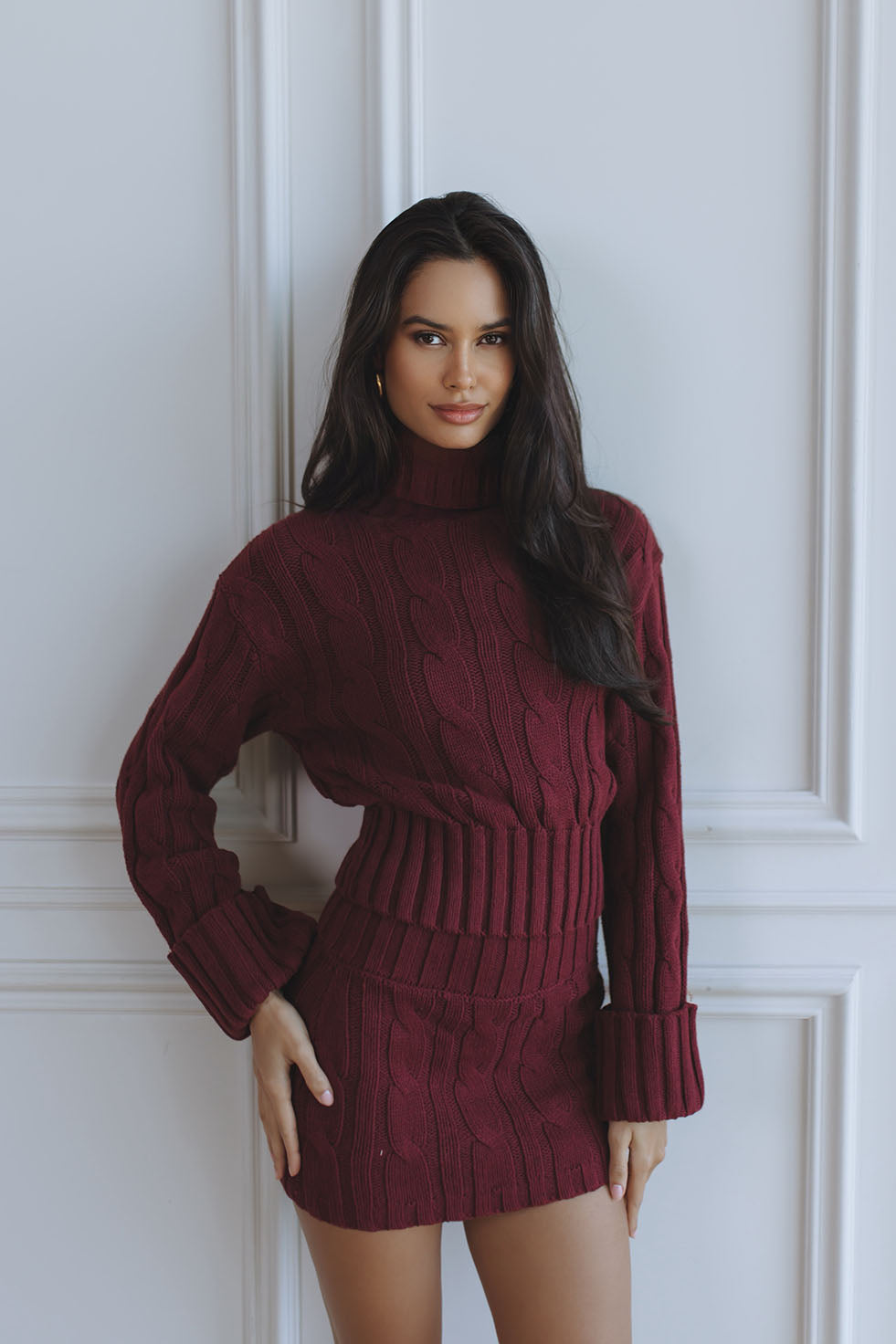 VIVIENNE SLEEVED KNIT TOP - WINE