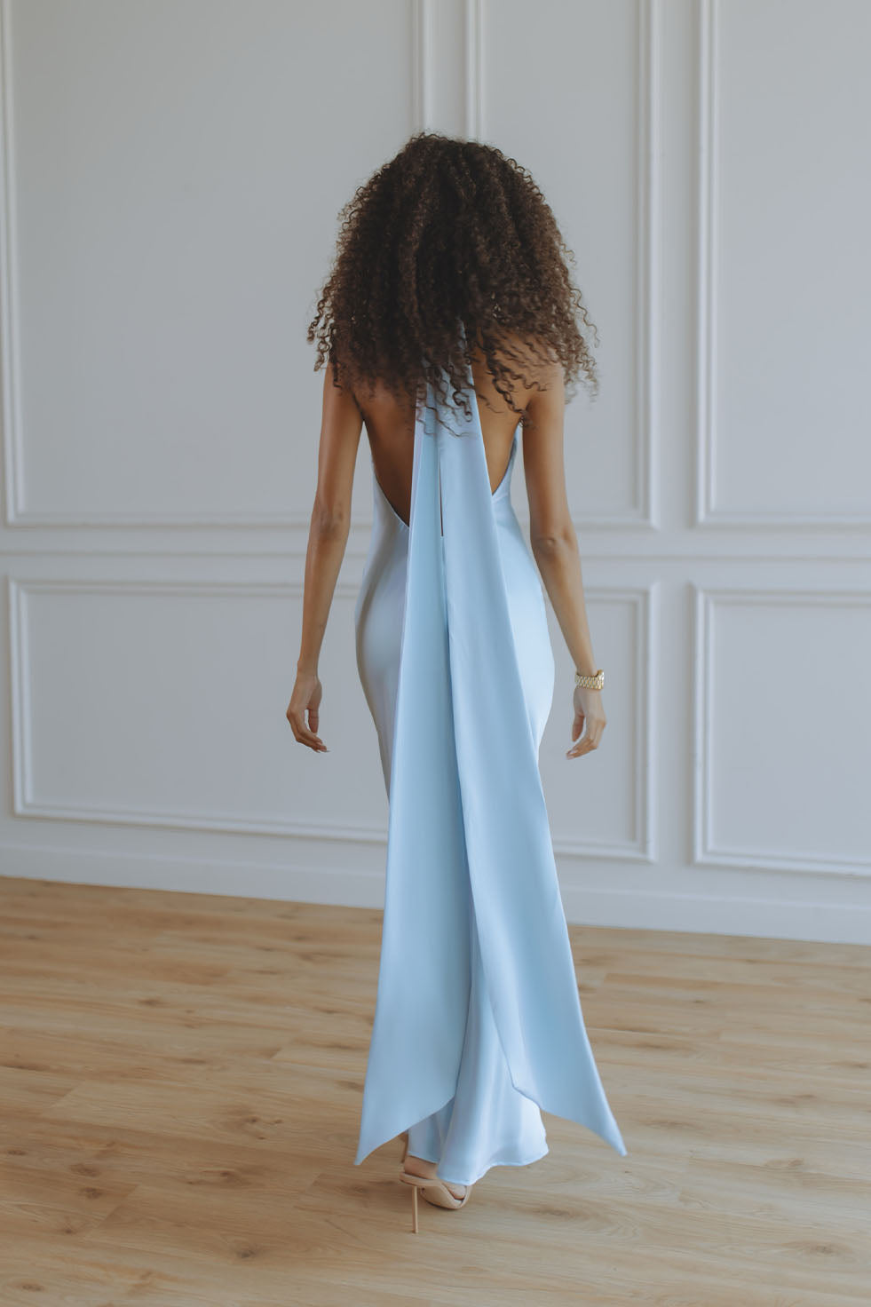 ARABELLE HIGH NECK MAXI DRESS - SKY BLUE