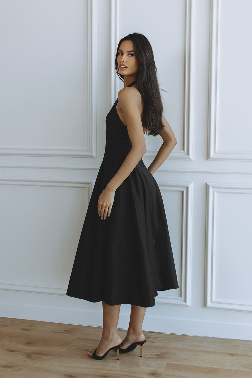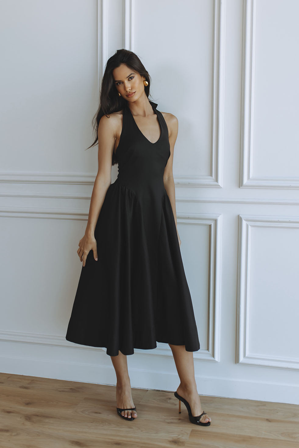 MEANA V-NECK HALTER MINI DRESS - BLACK