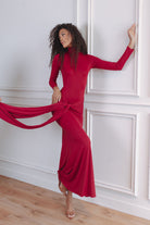 ALIX MAXI TIE FRONT DRESS - BURGUNDY