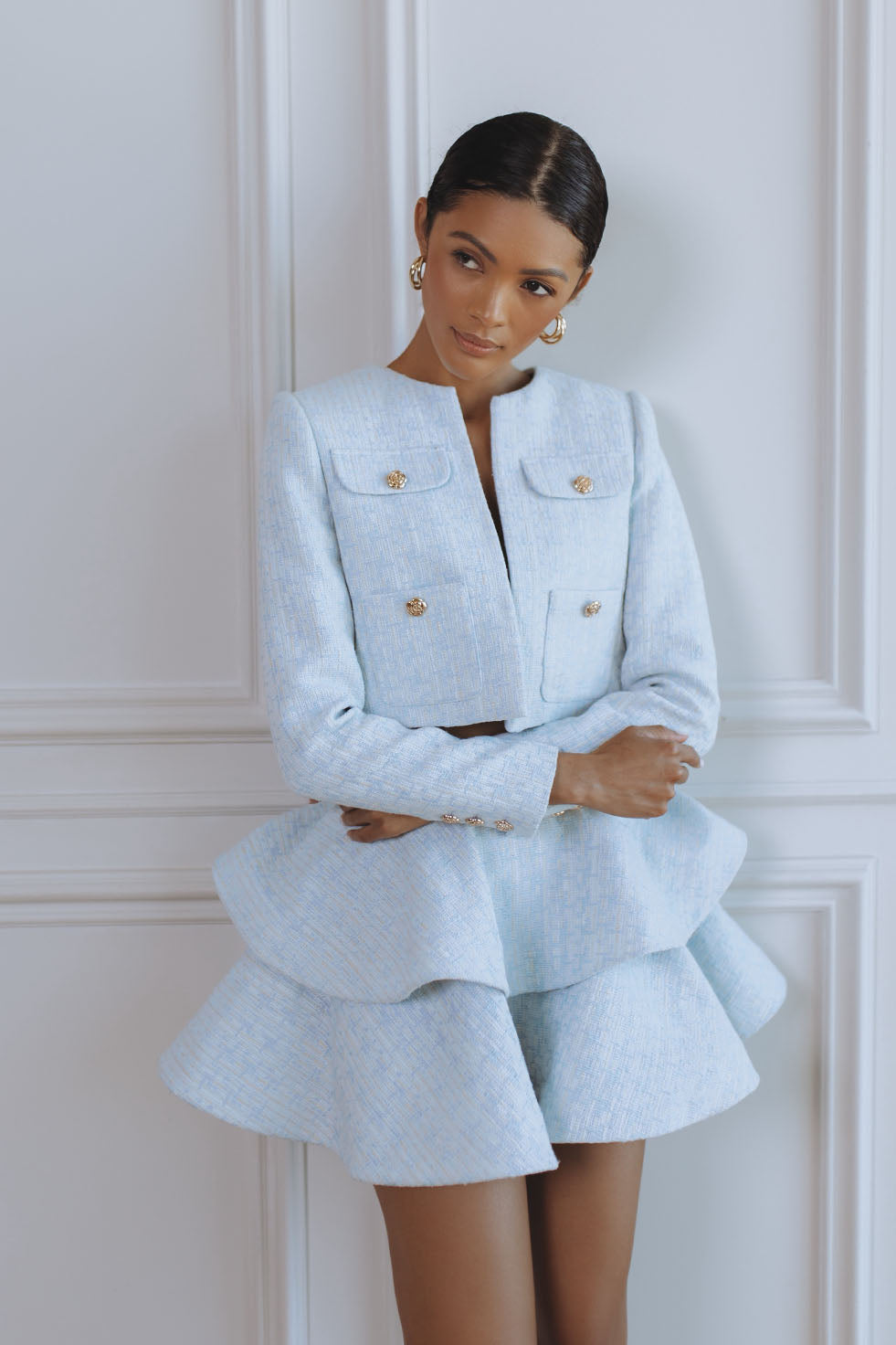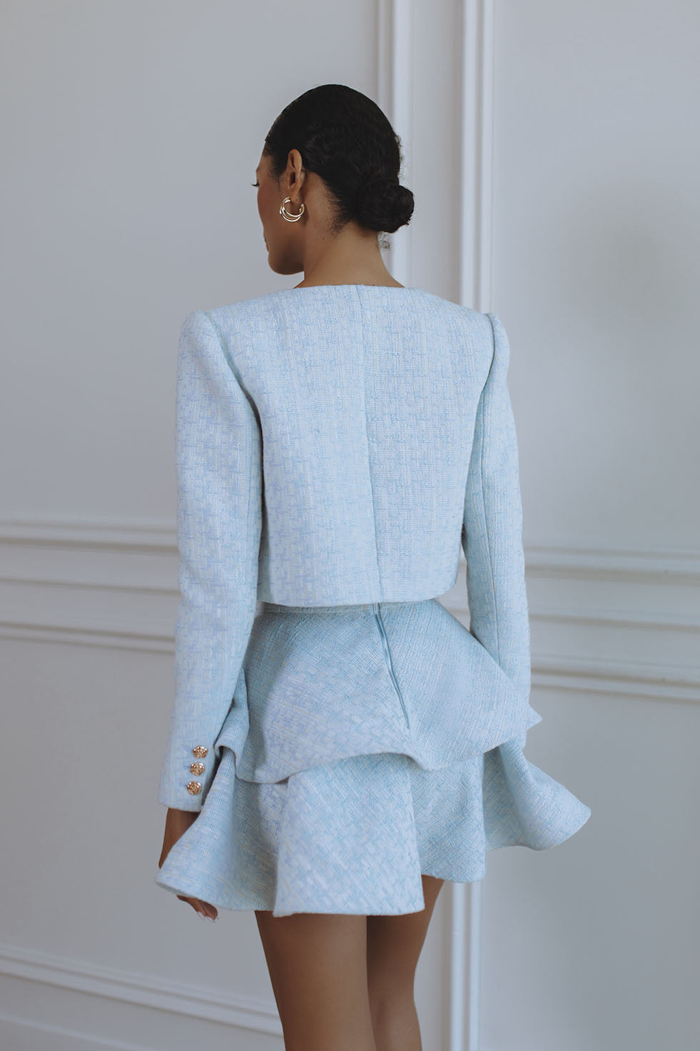 MARGAUX BOUCLE CROP JACKET - POWDER BLUE
