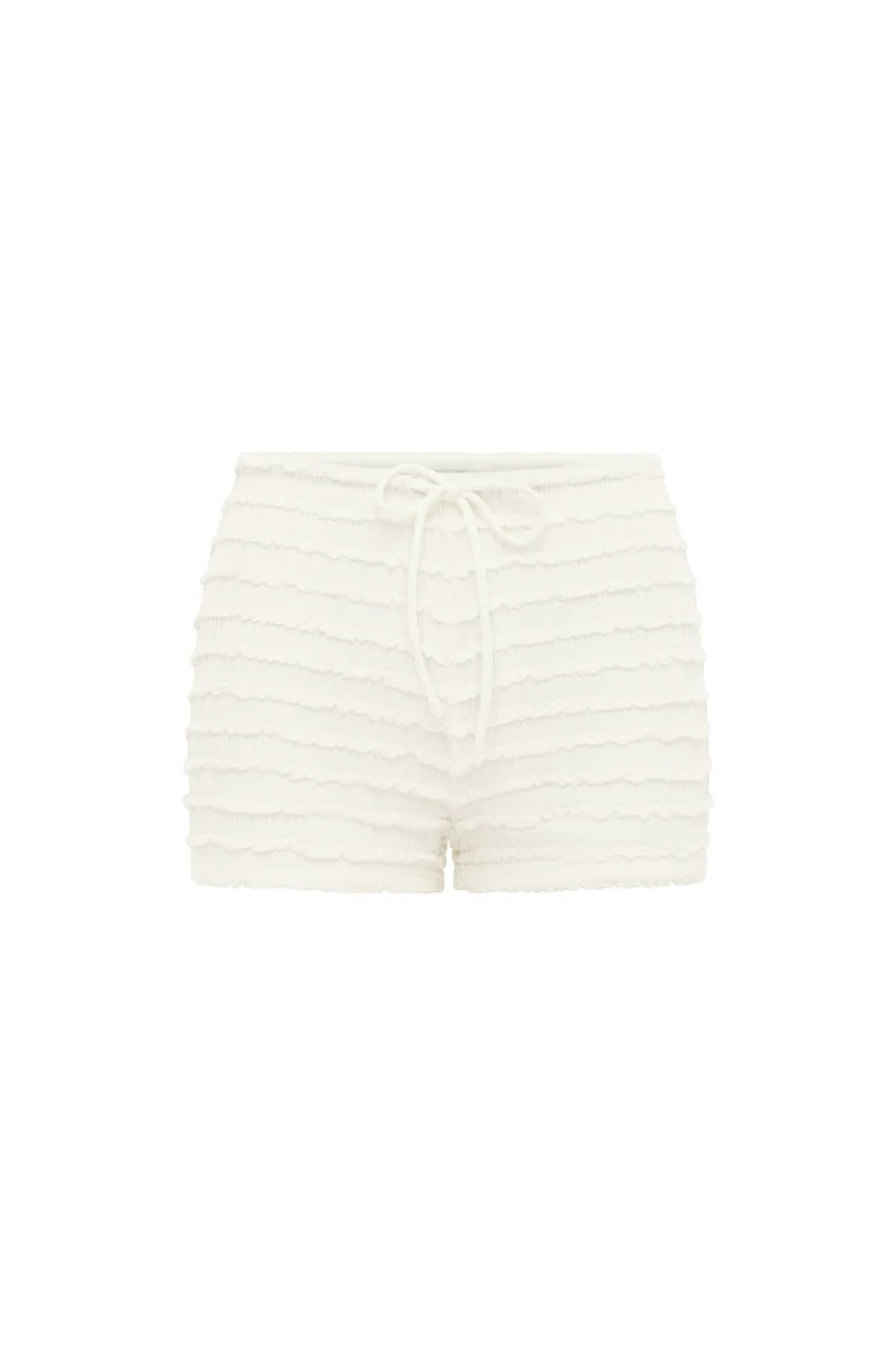 ADALEE RUFFLE TEXTURE HOT SHORTS - WHITE