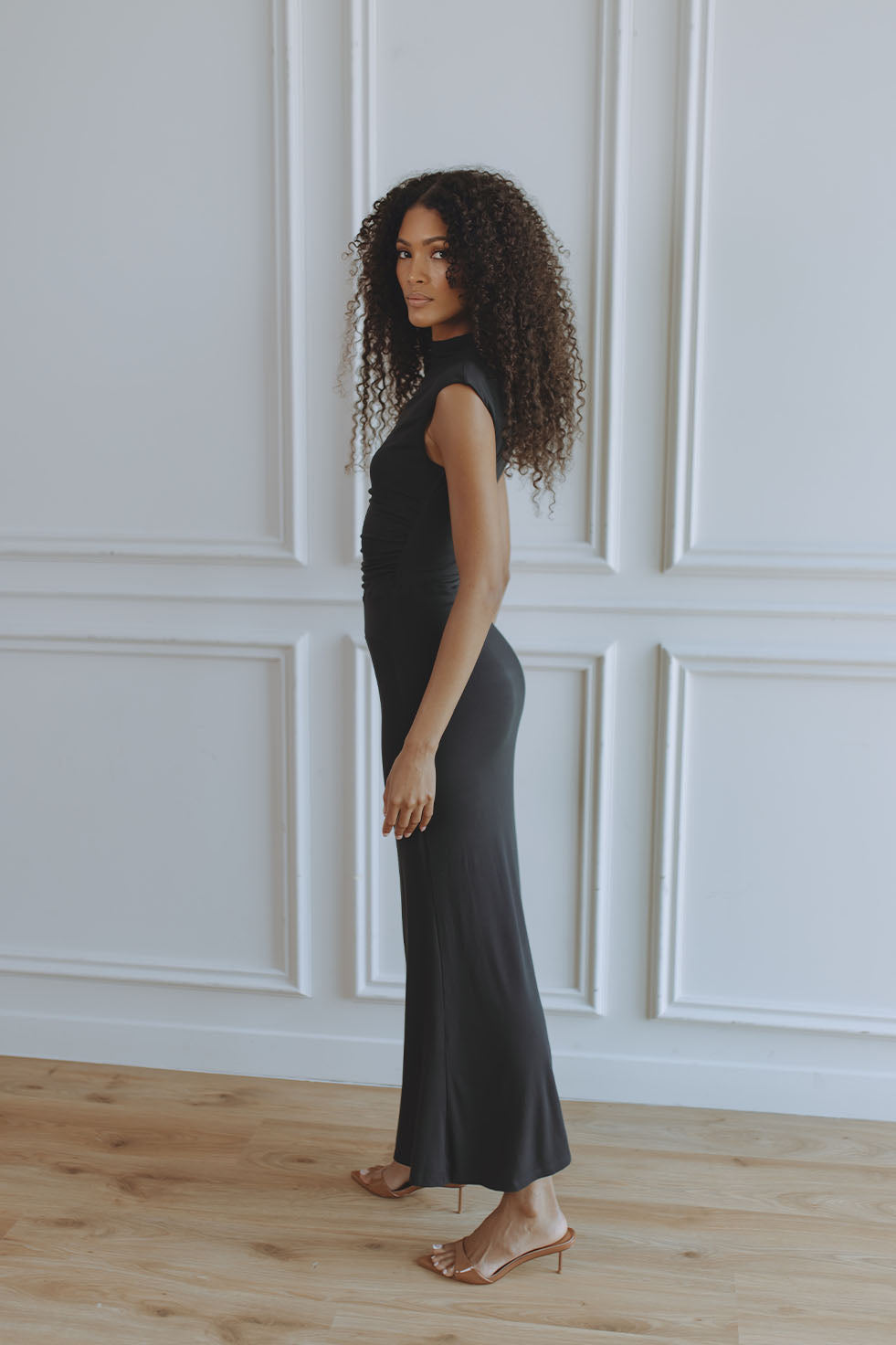 AVANNI JERSEY HIGH NECK MAXI DRESS - GRANITE