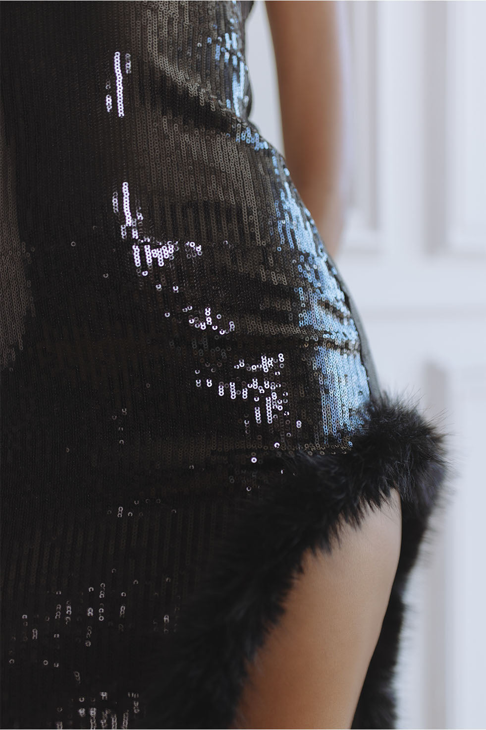 COURTNEY FAUX FUR TRIM MAXI DRESS - BLACK