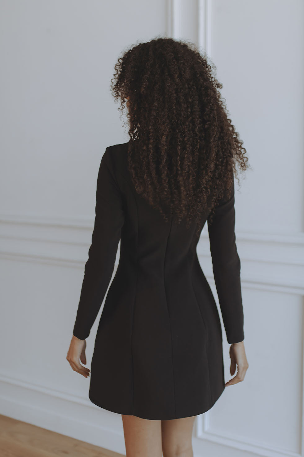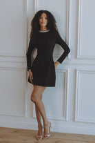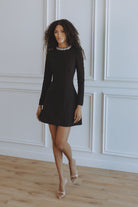 DELPHI LONG SLEEVE HOURGLASS MINI DRESS - BLACK