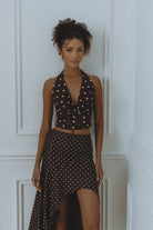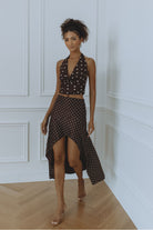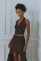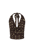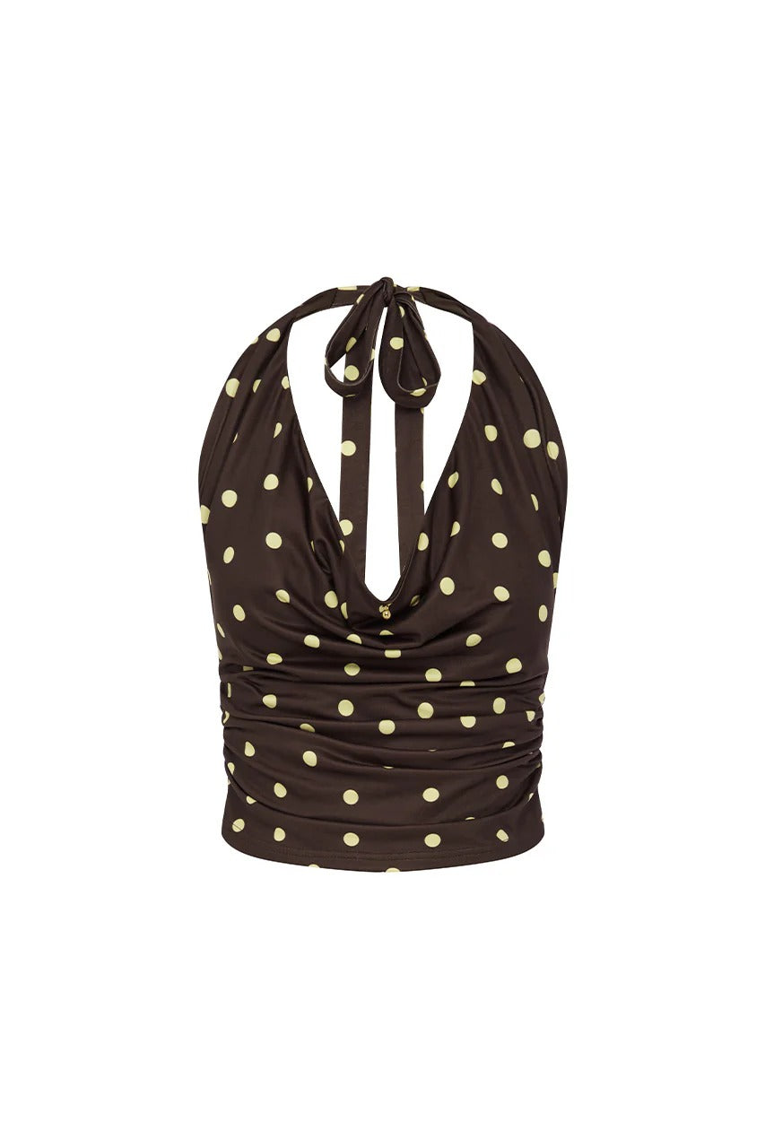 MELODY HALTER COWL TOP - CHOC/LEMON POLKA