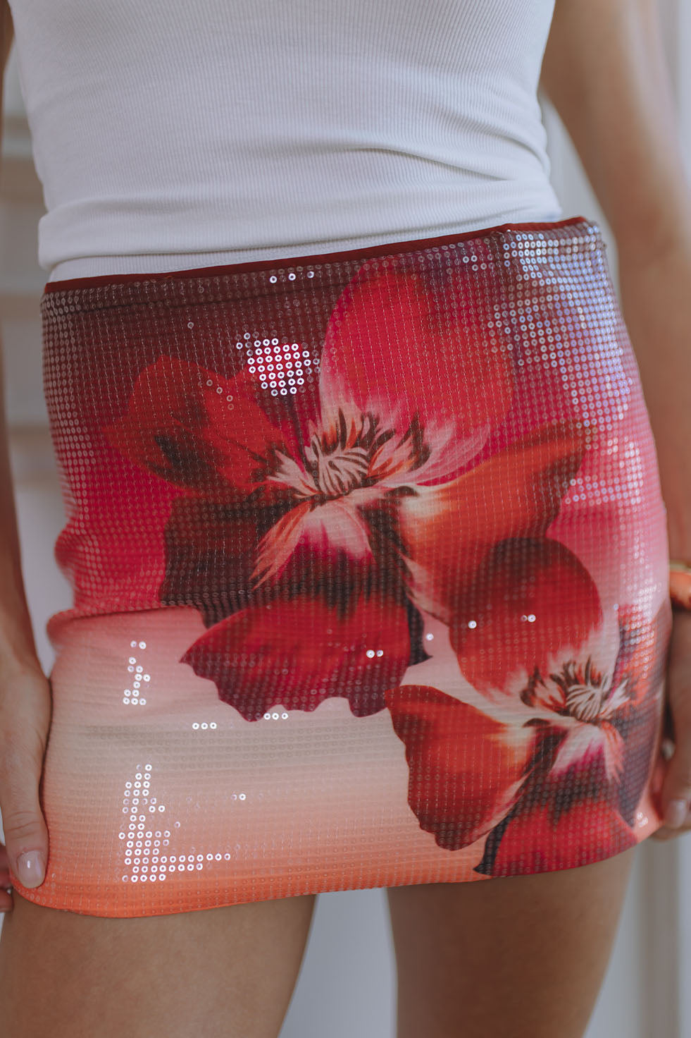 OPHIRA SEQUIN MINI SKIRT - RUBY FLOWER