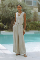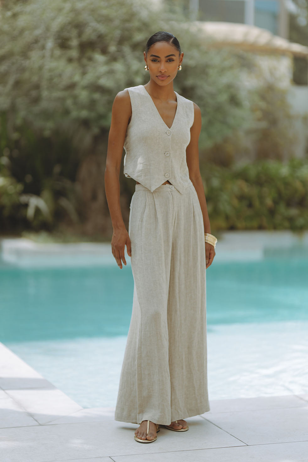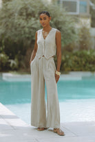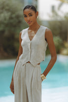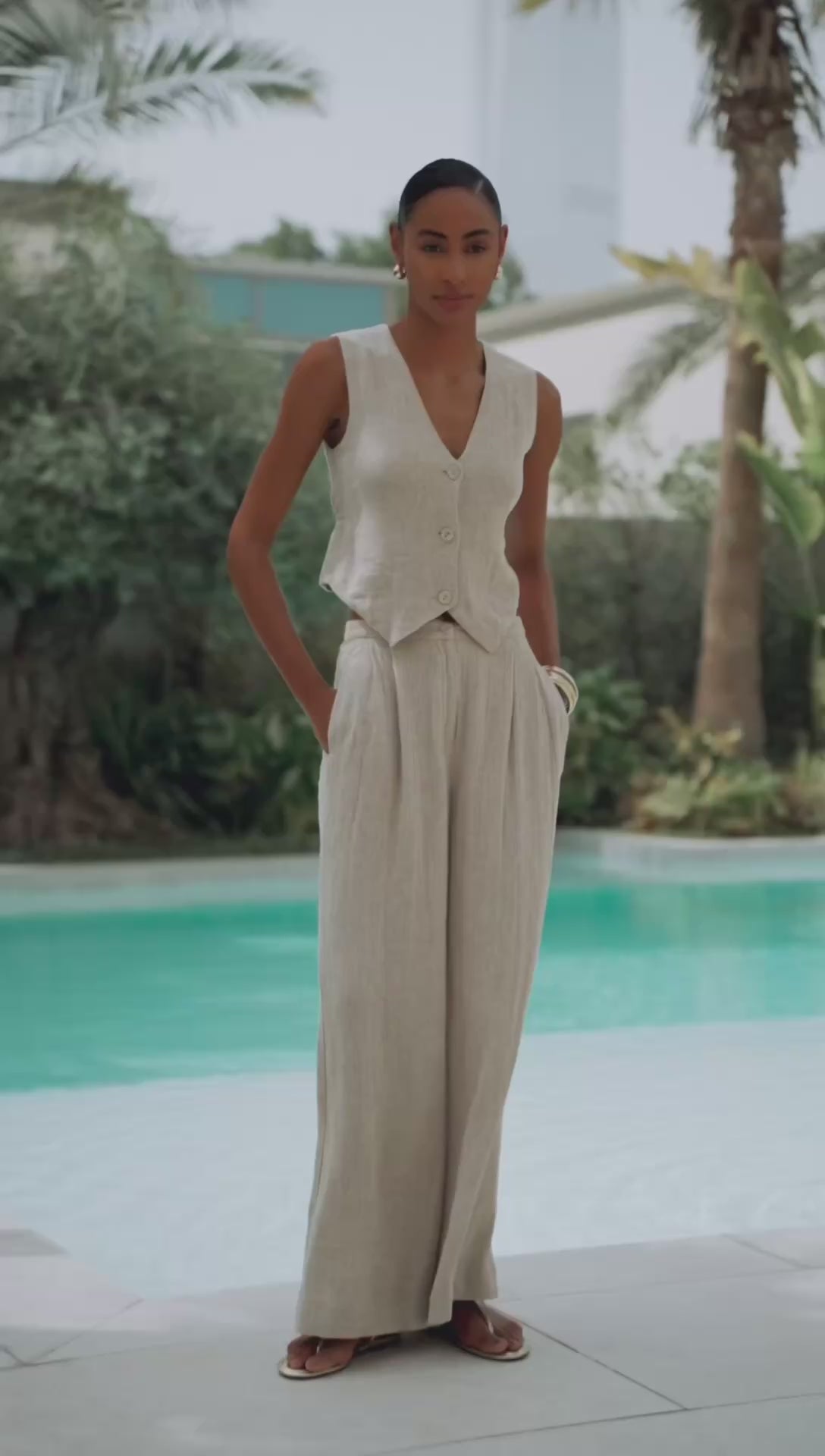 The Soho Linen/Gauze Vest is a timeless layering piece crafted from super soft, breathable fabric for all-day comfort. Featuring a deep V-neckline, button-down front, and tailored hem, it adds effortless polish to relaxed summer looks. Pair it with matching trousers for an elegant co-ord set, or style it solo for a chic minimalist vibe. Lightweight and versatile, this vest is perfect for warm days!