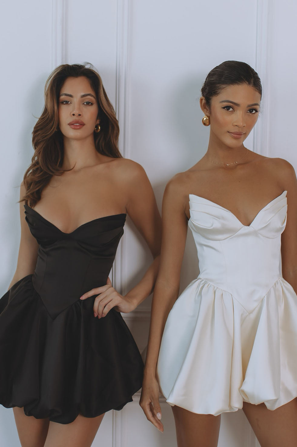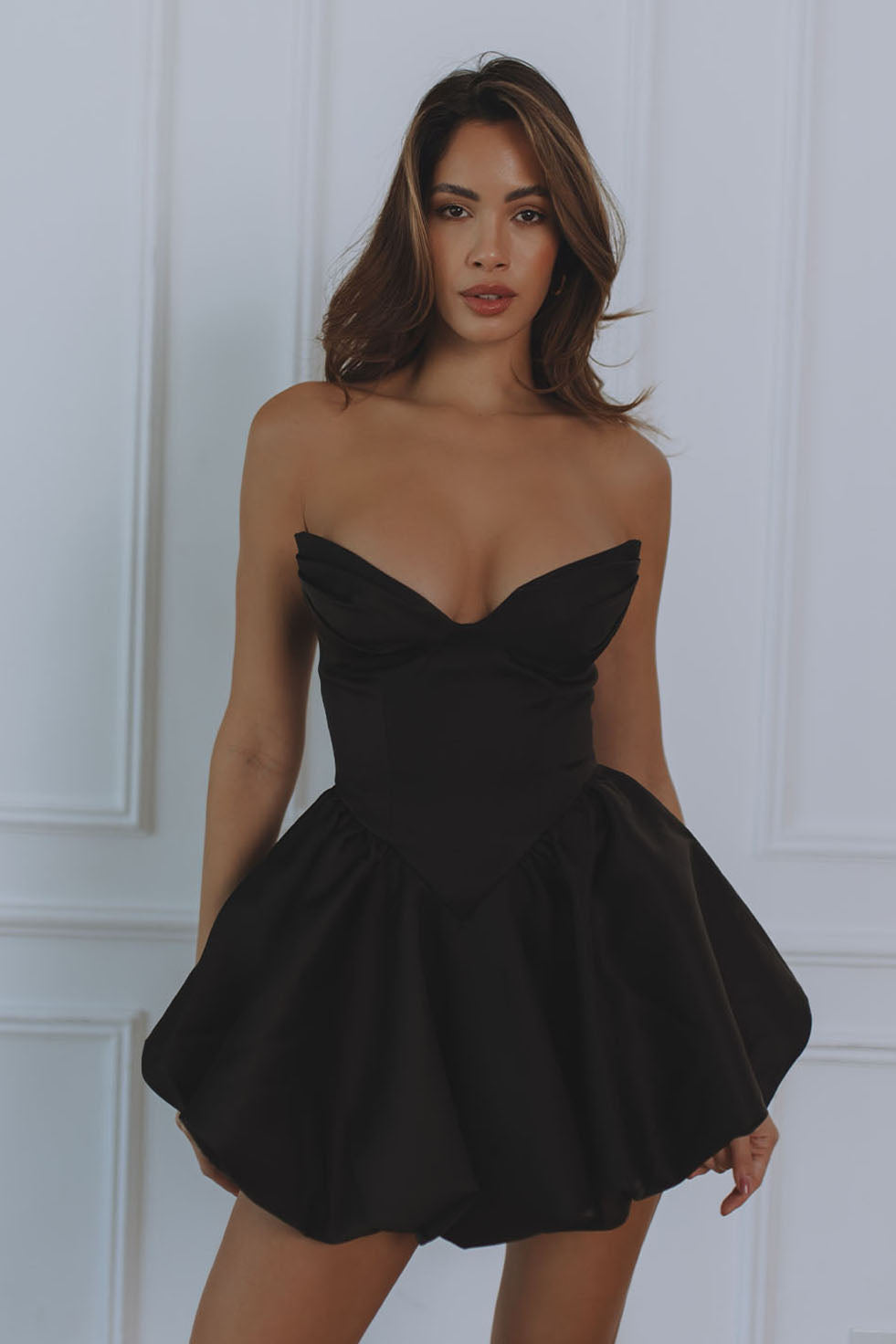 AVELLA BUBBLE HEM MINI DRESS - BLACK