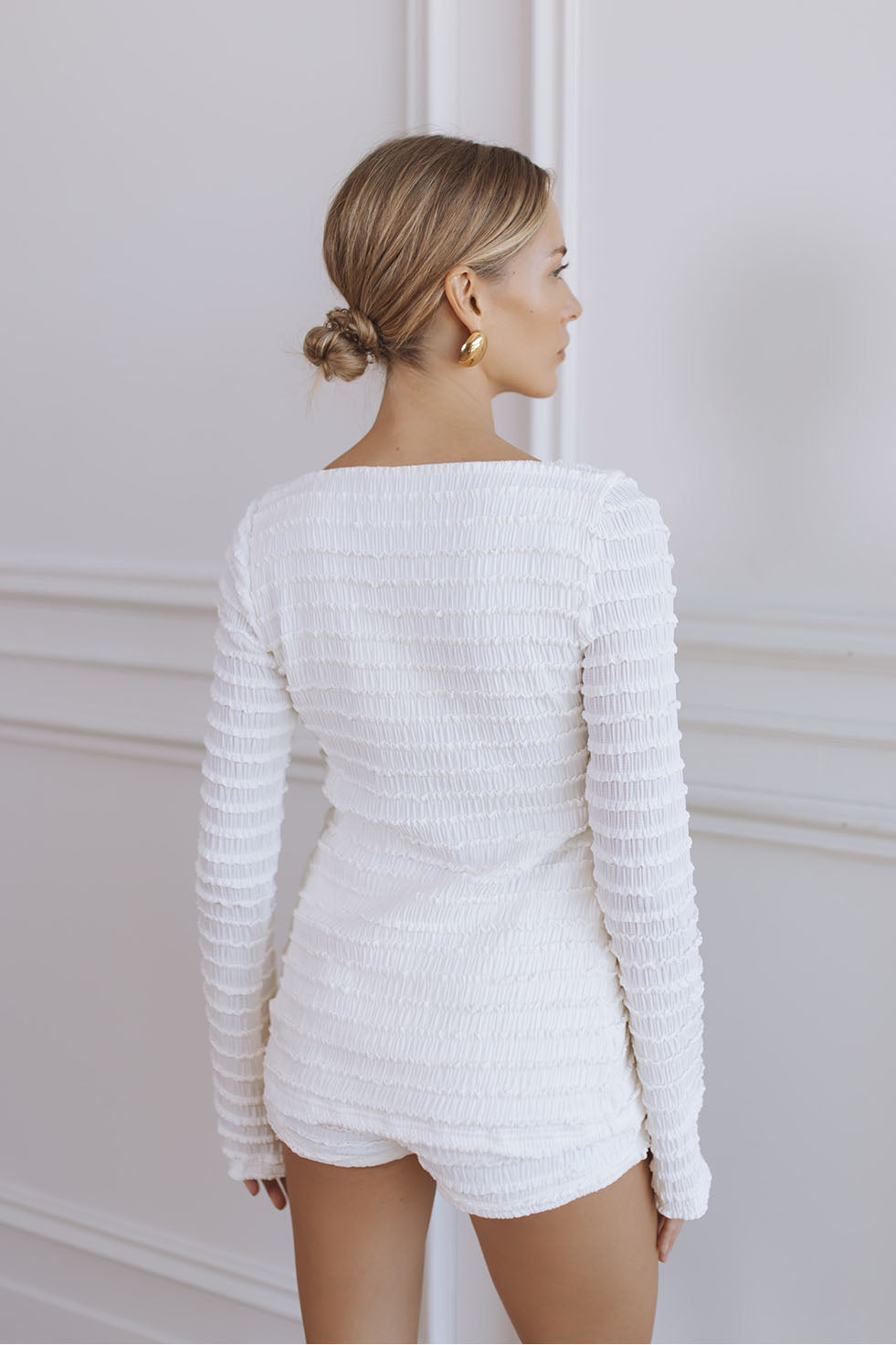 ADALEE RUFFLE TEXTURE TOP - WHITE