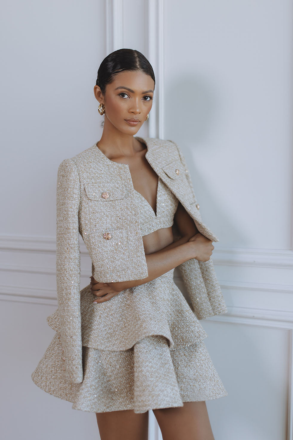 Our bottoms are designed for balance and impact. Satin skirts, tailored trousers, and sequin minis make styling effortless. Mix textures, layer with tops, or pair with structured blazers for a holiday-ready look.