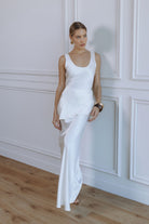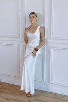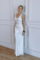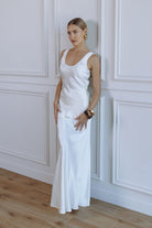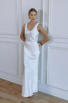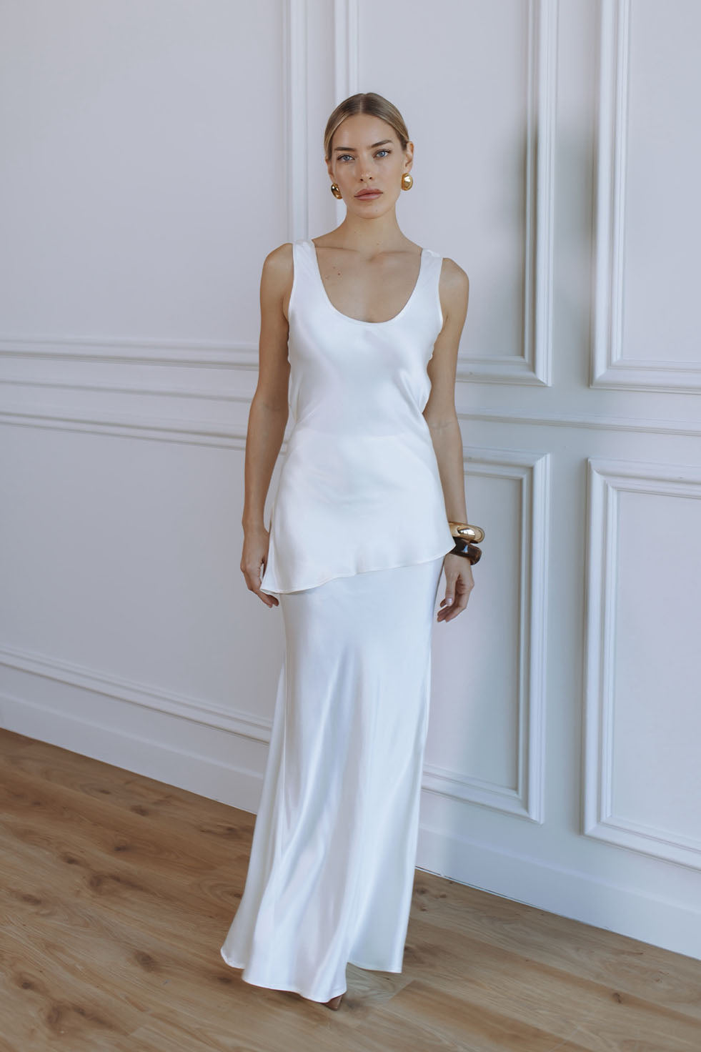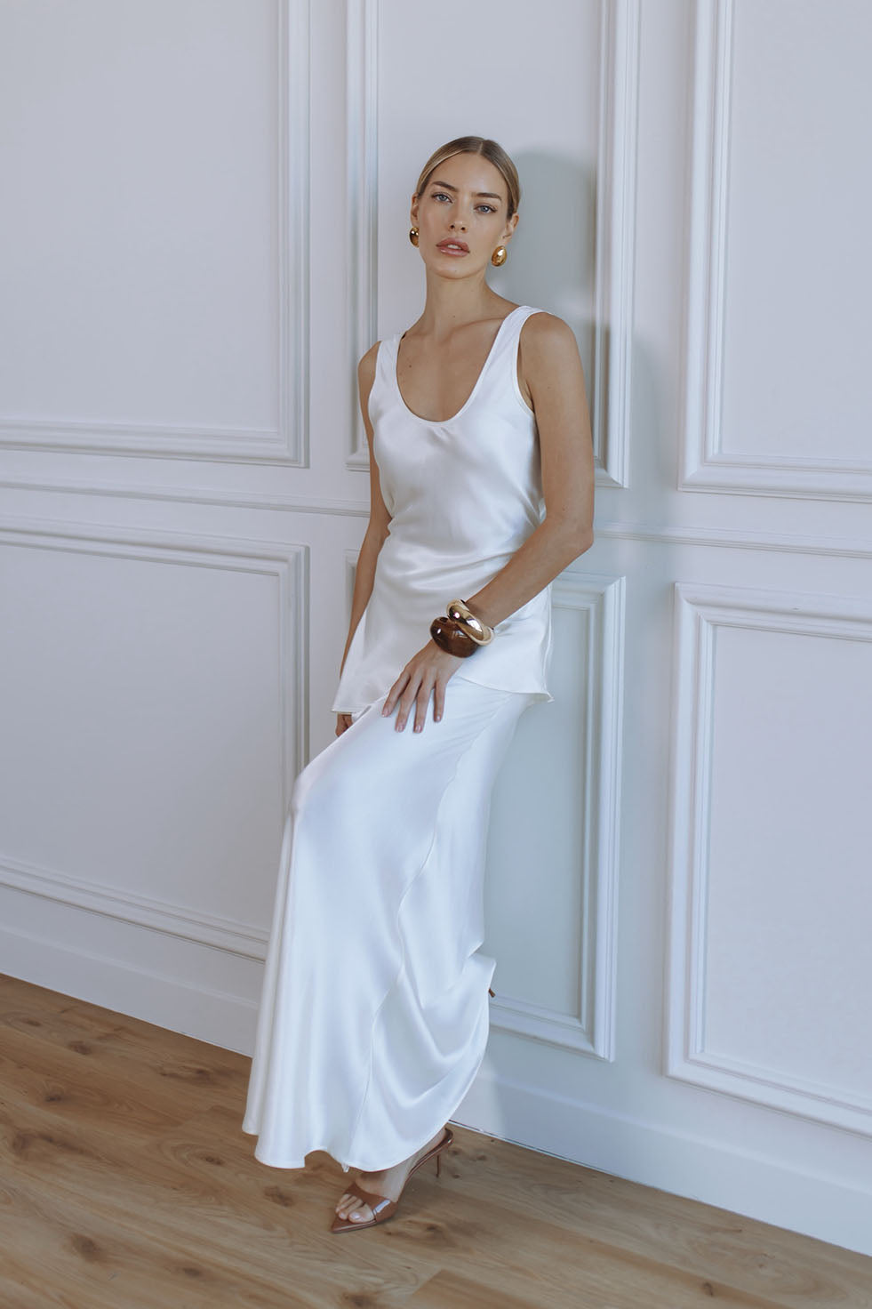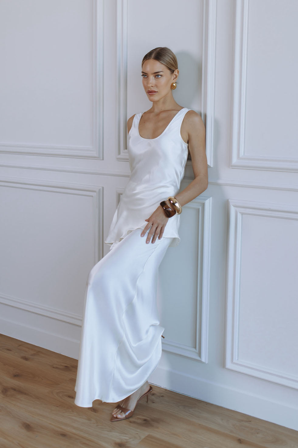 ELIZA SCOOP NECK SATIN TOP - PEARL WHITE