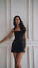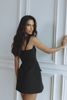 VICTORIA BOUCLE ROMPER HOURGLASS MINI DRESS - BLACK