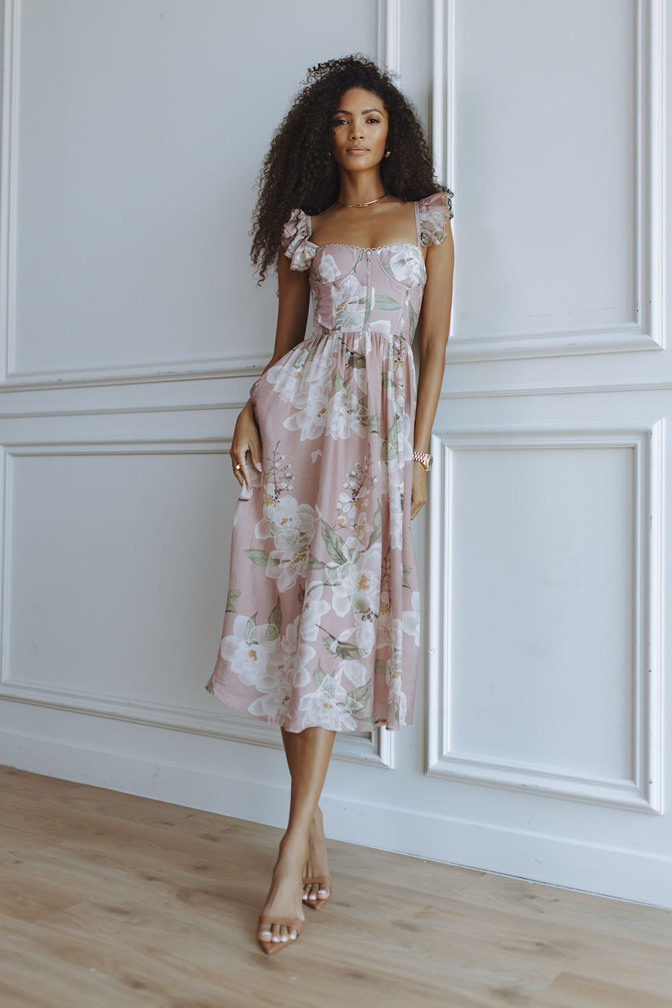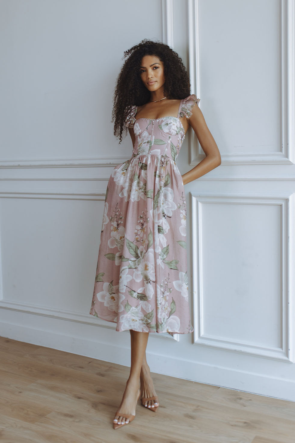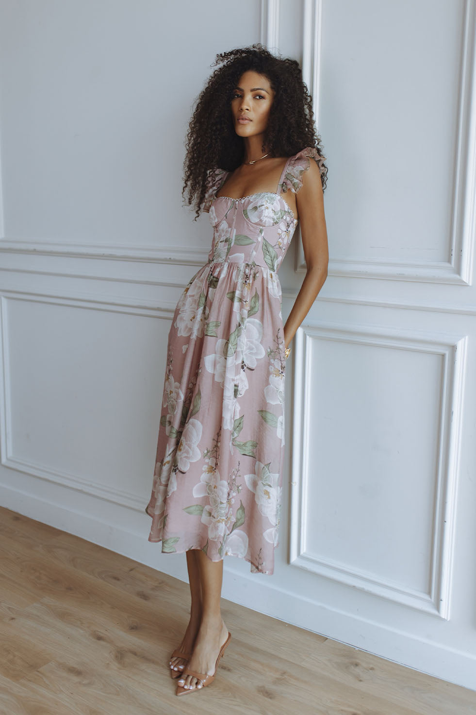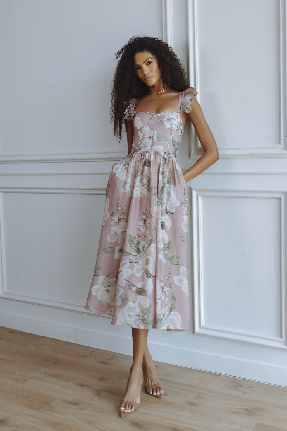 TALA CORSET MIDI DRESS - CAMELIA DREAM