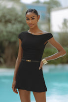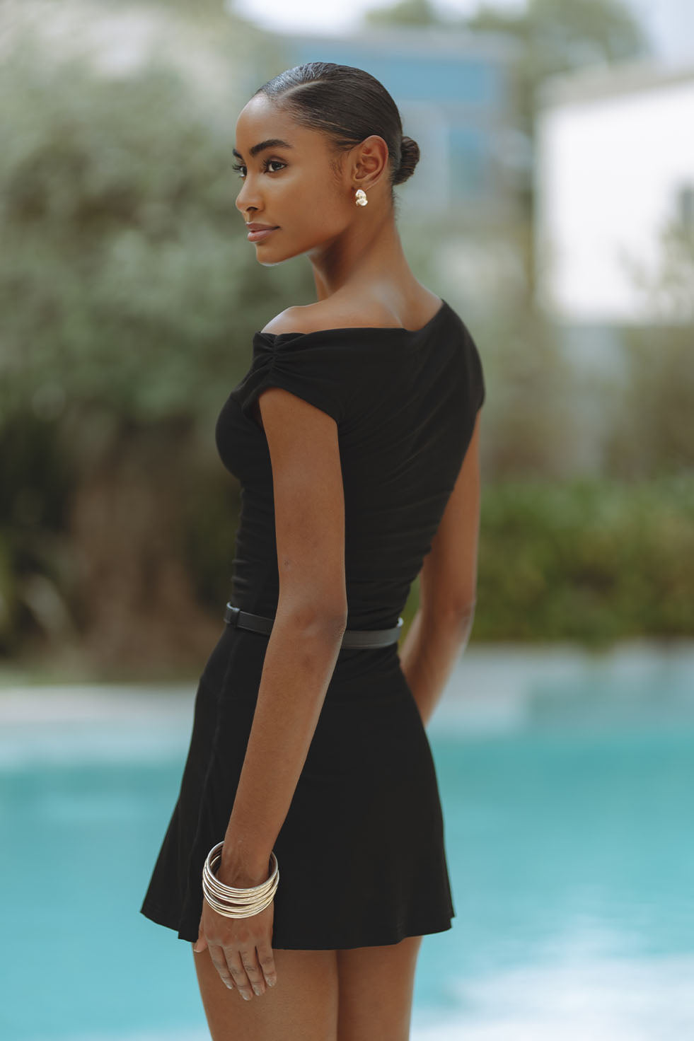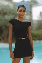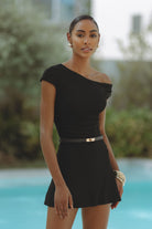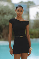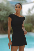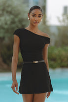 TALLI ASYMMETRICAL NECK JERSEY MINI DRESS - BLACK