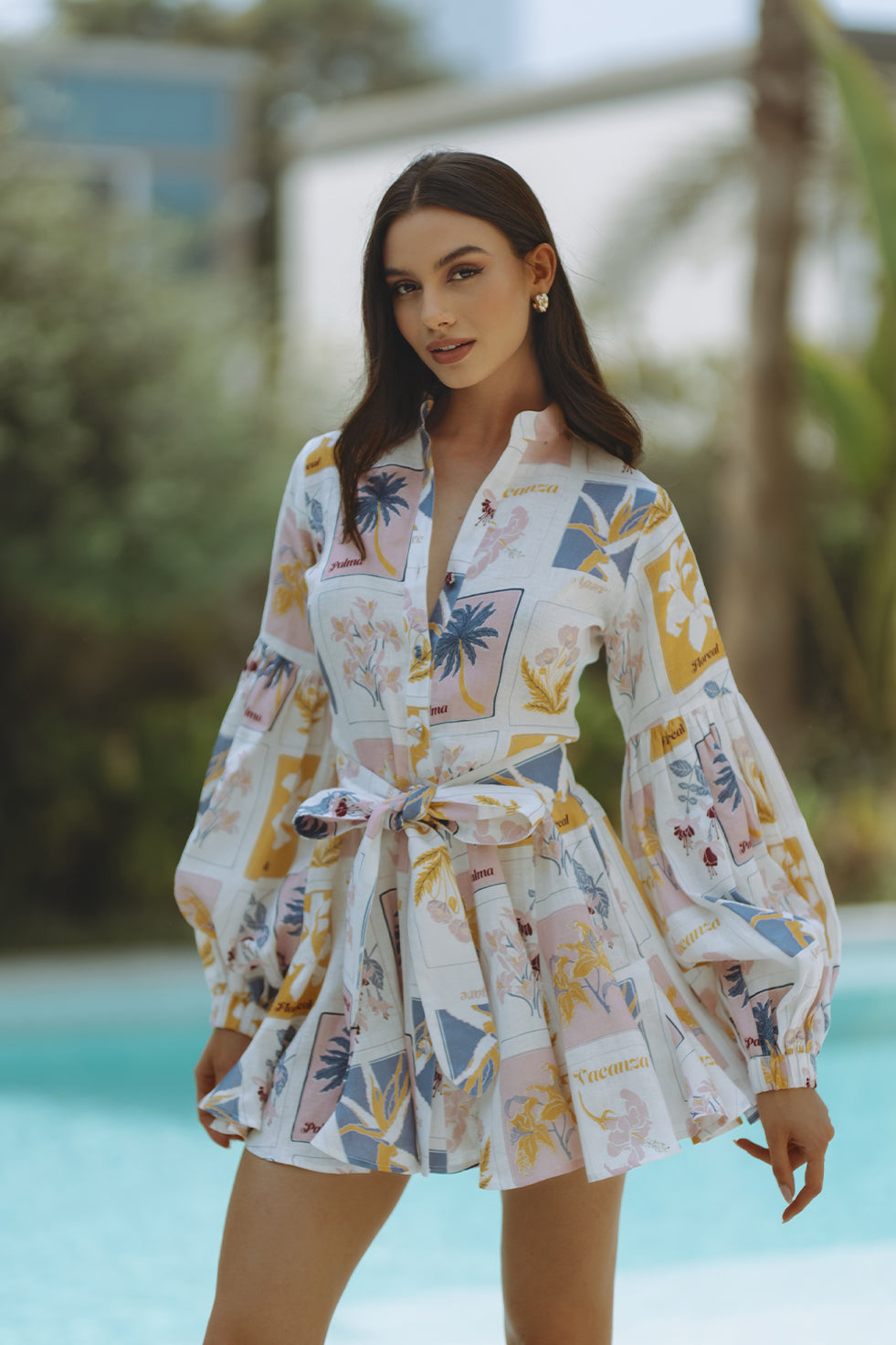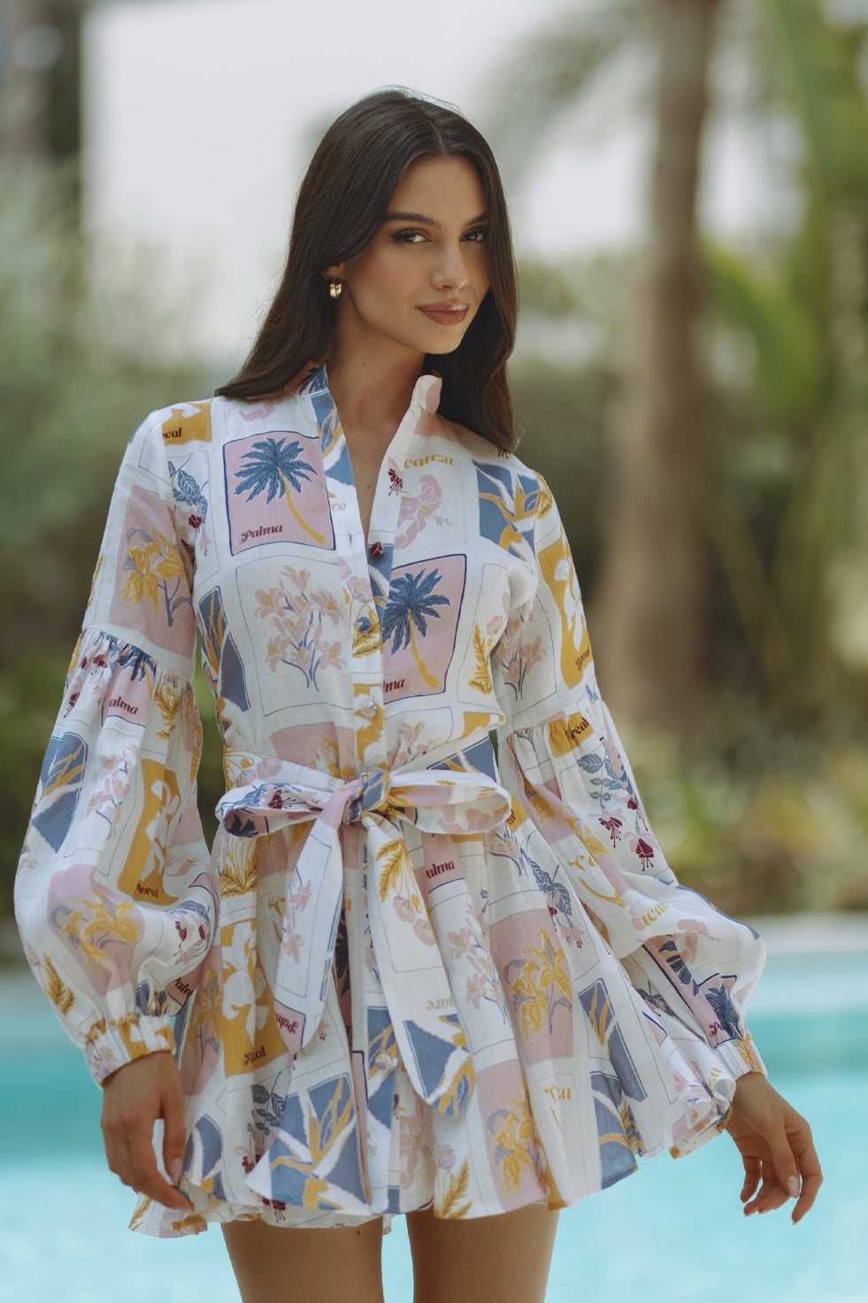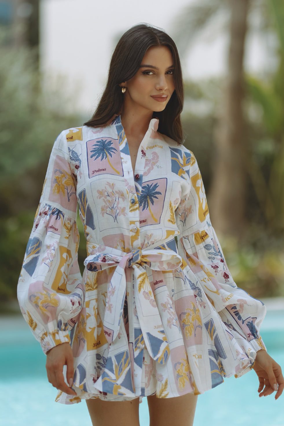 TESSA LINEN MINI DRESS - POSTCARD DAZE