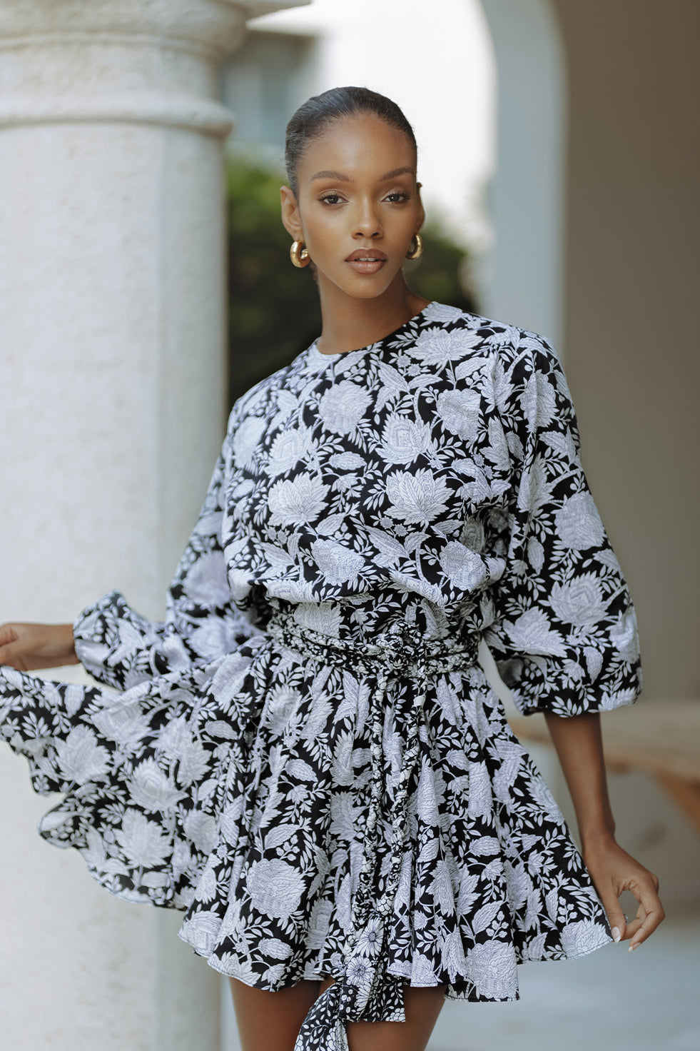 ZILPAH COTTON MINI DRESS - BOTANIC ETCH