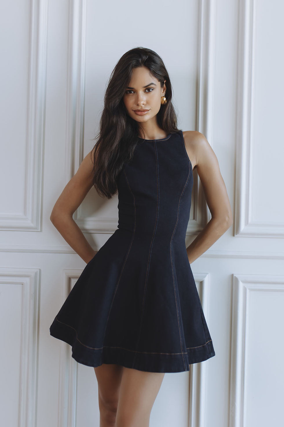 PALMER DENIM MINI DRESS - DARK DENIM