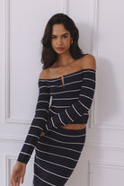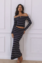 ANYA SLEEVED KNIT TOP - NAVY STRIPE