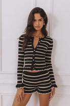 DONNA LONG SLEEVE KNIT TOP - BLACK/CREAM