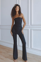 Sleek, versatile, and endlessly flattering, the FRANKIE Pants in navy are a wardrobe essential. Cut in a high-rise fit with a smooth waistband, they feature a slim silhouette that gently flares at the hem, elongating the legs with effortless elegance. Crafted from luxe stretch fabric, these pants move with you while maintaining a polished look. Perfect for pairing with the matching FRANKIE Longline Bandeau Top or dressing up with blouses for chic day-to-night styling.