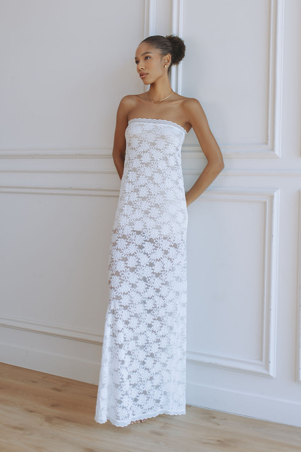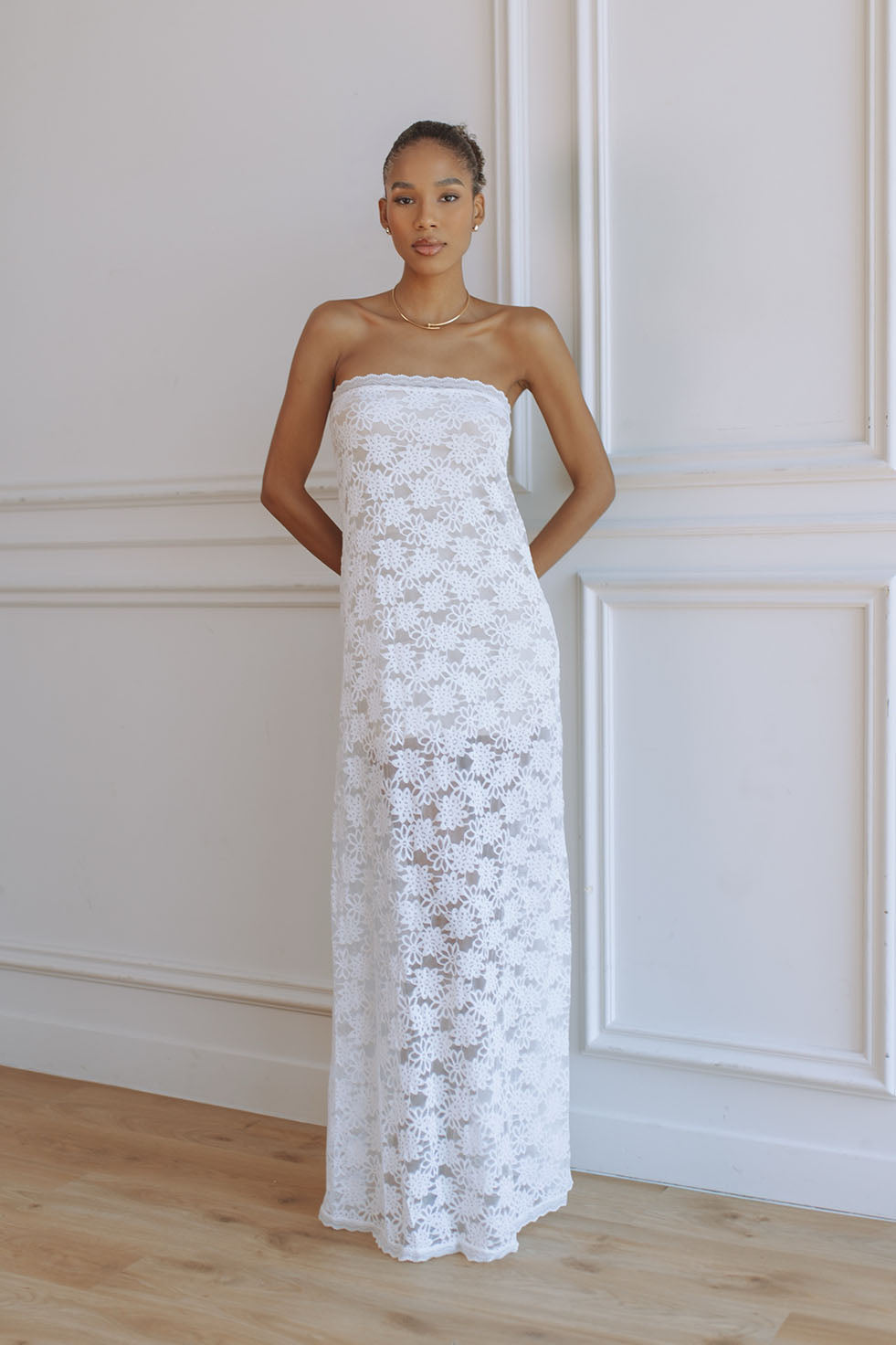 KINERA STRAPLESS LACE MAXI DRESS - WHITE