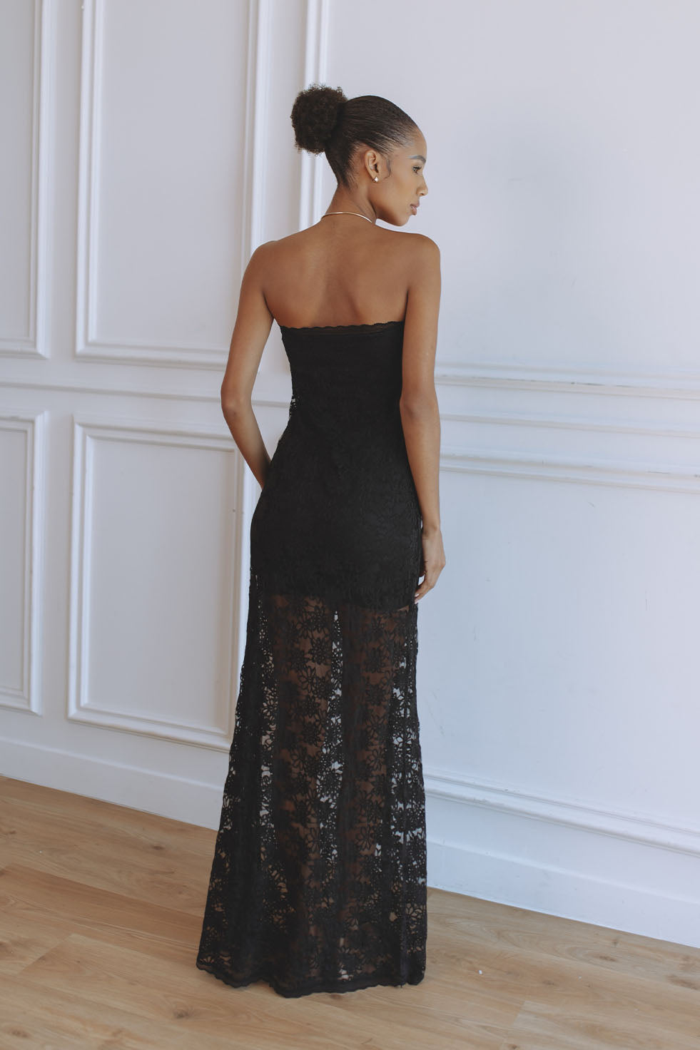 KINERA STRAPLESS LACE MAXI DRESS - BLACK
