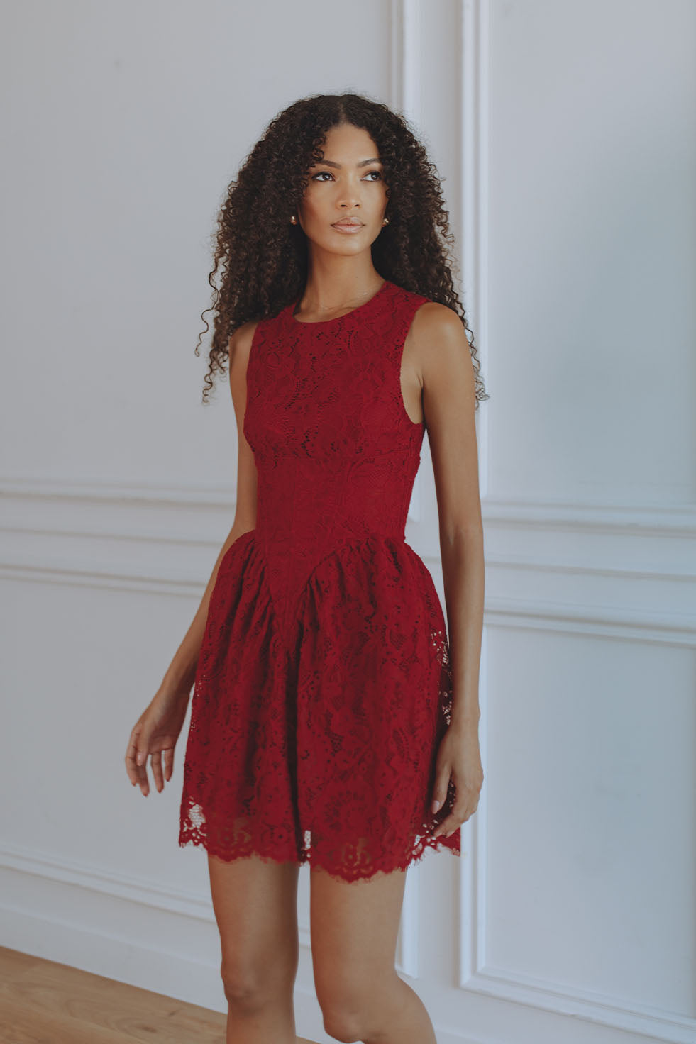 AURELIE LACE TRIM LINEN MINI DRESS - BITTER CHOCOLATE