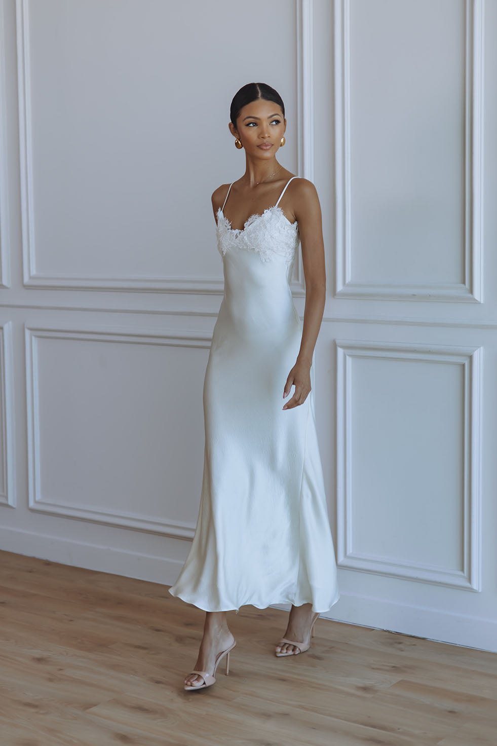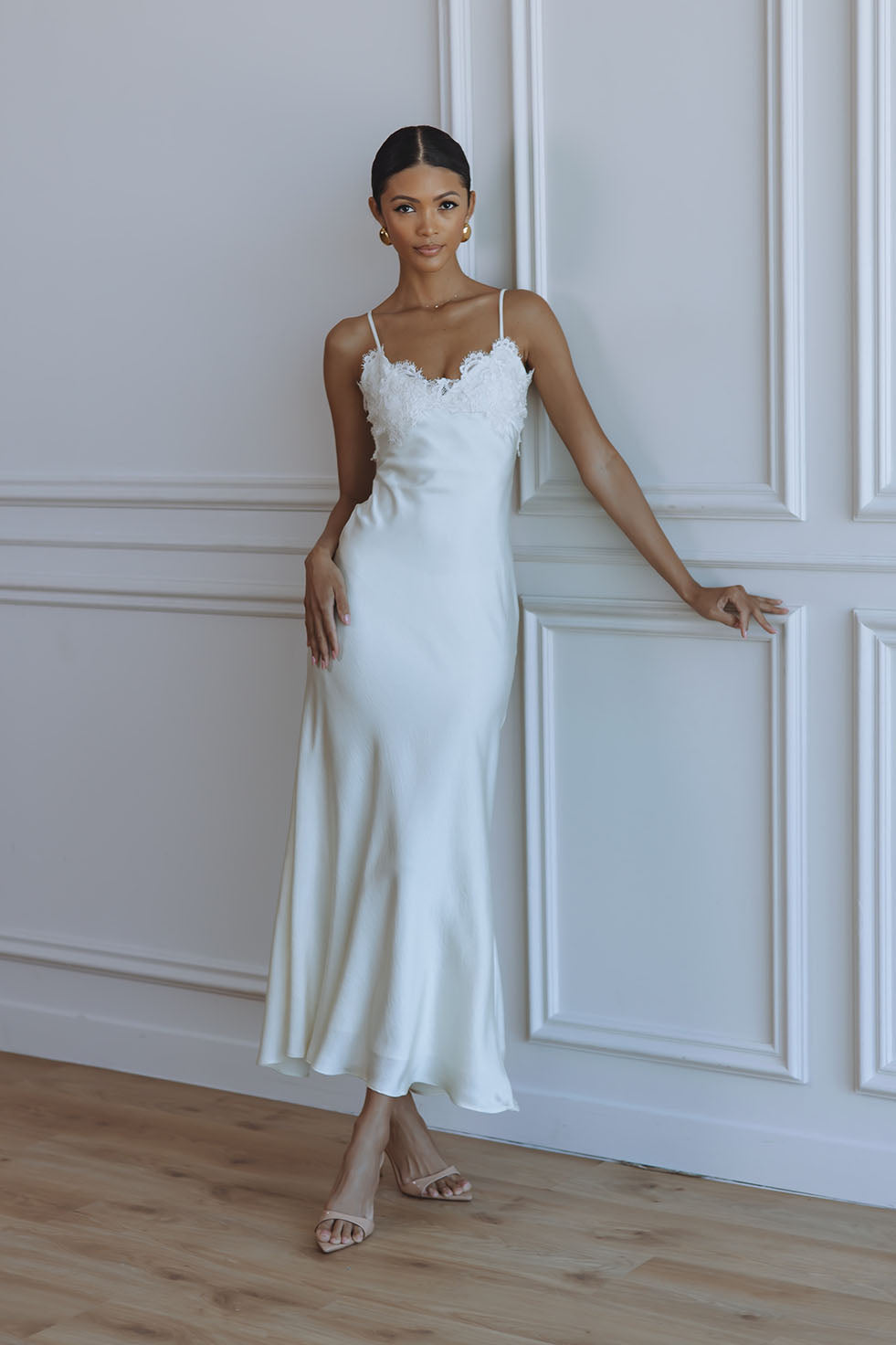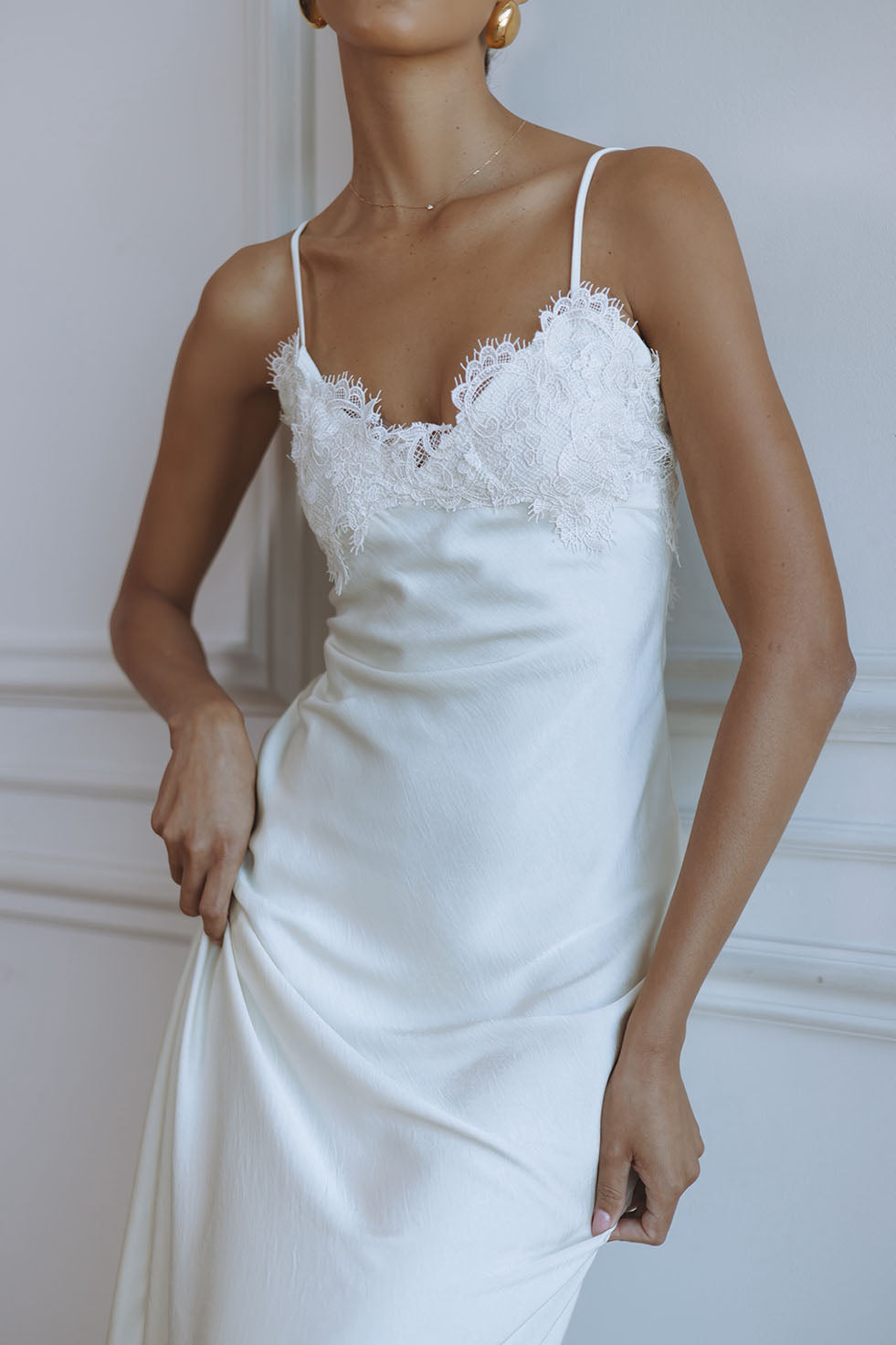 ELISAN LACE SATIN MAXI DRESS - IVORY