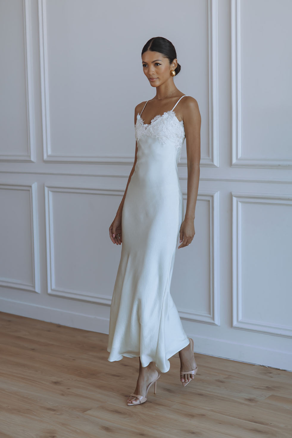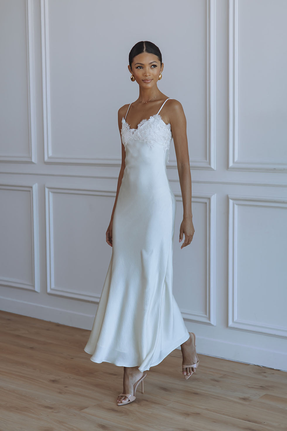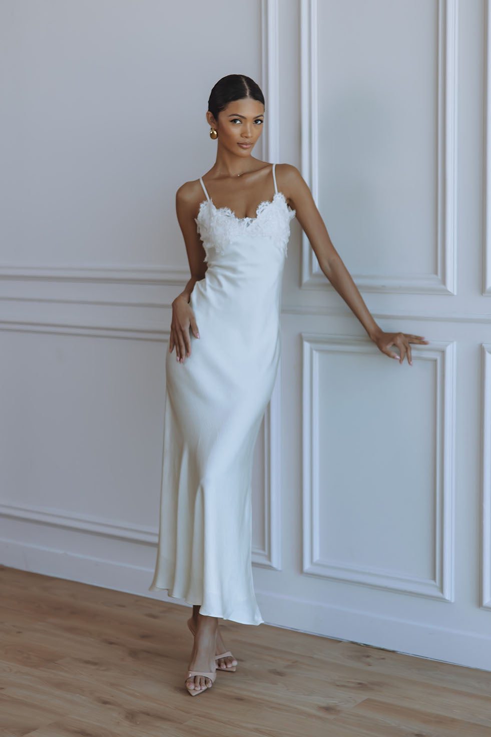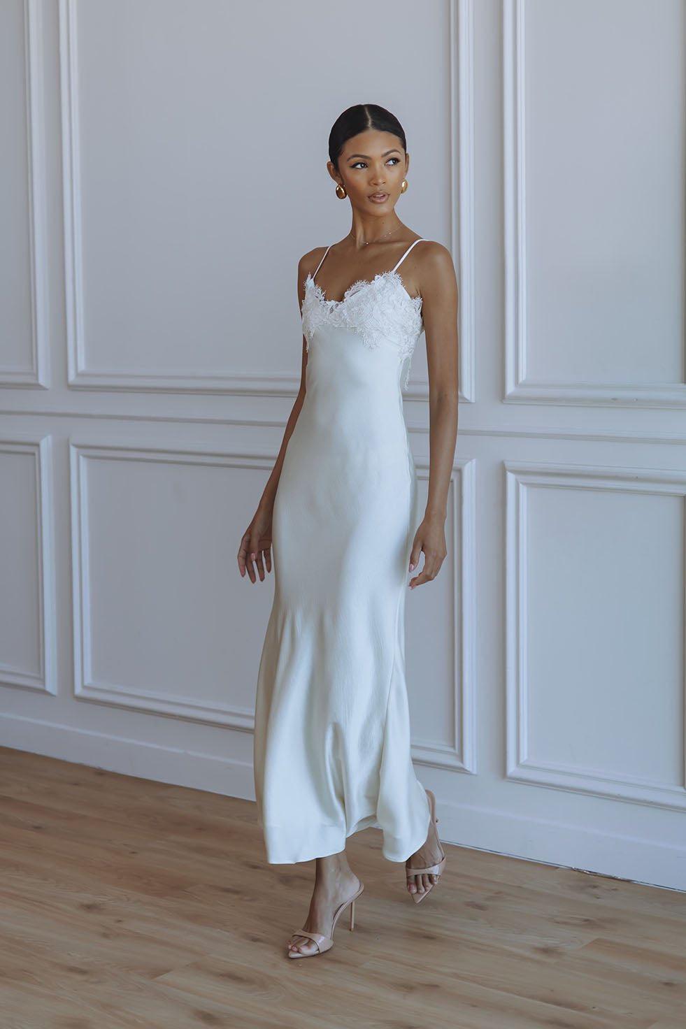 ELISAN LACE SATIN MAXI DRESS - IVORY