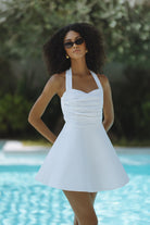 SABINE LINEN HALTER MINI DRESS - ORCHID WHITE