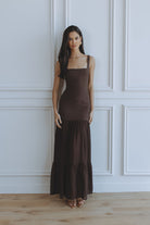 TAHLIA SQUARE NECK MAXI DRESS - BITTER CHOCOLATE