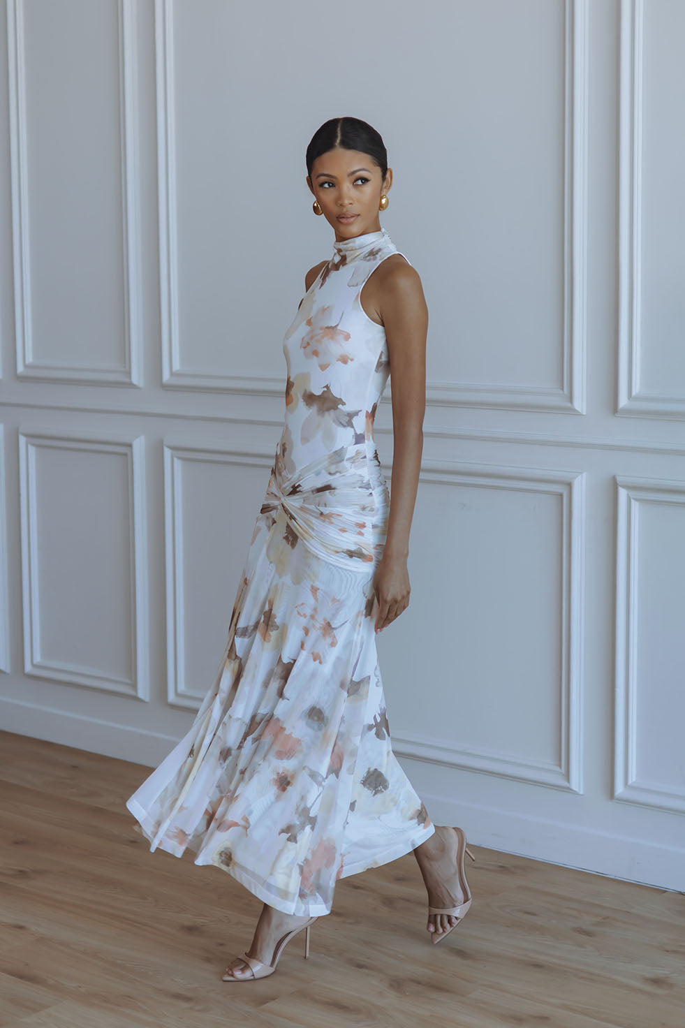 LEANNA MESH MIDI DRESS - IVORY FLORAL