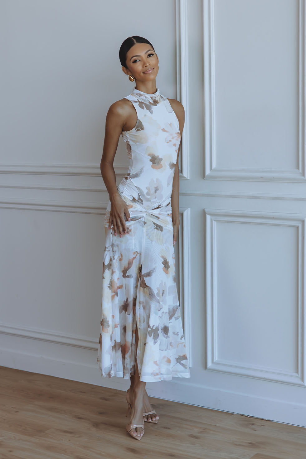 LEANNA MESH MIDI DRESS - IVORY FLORAL