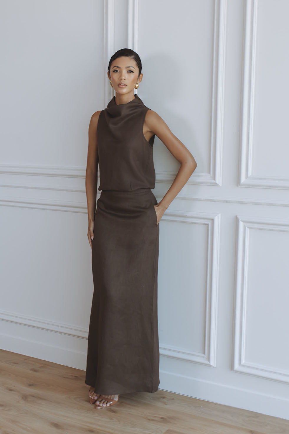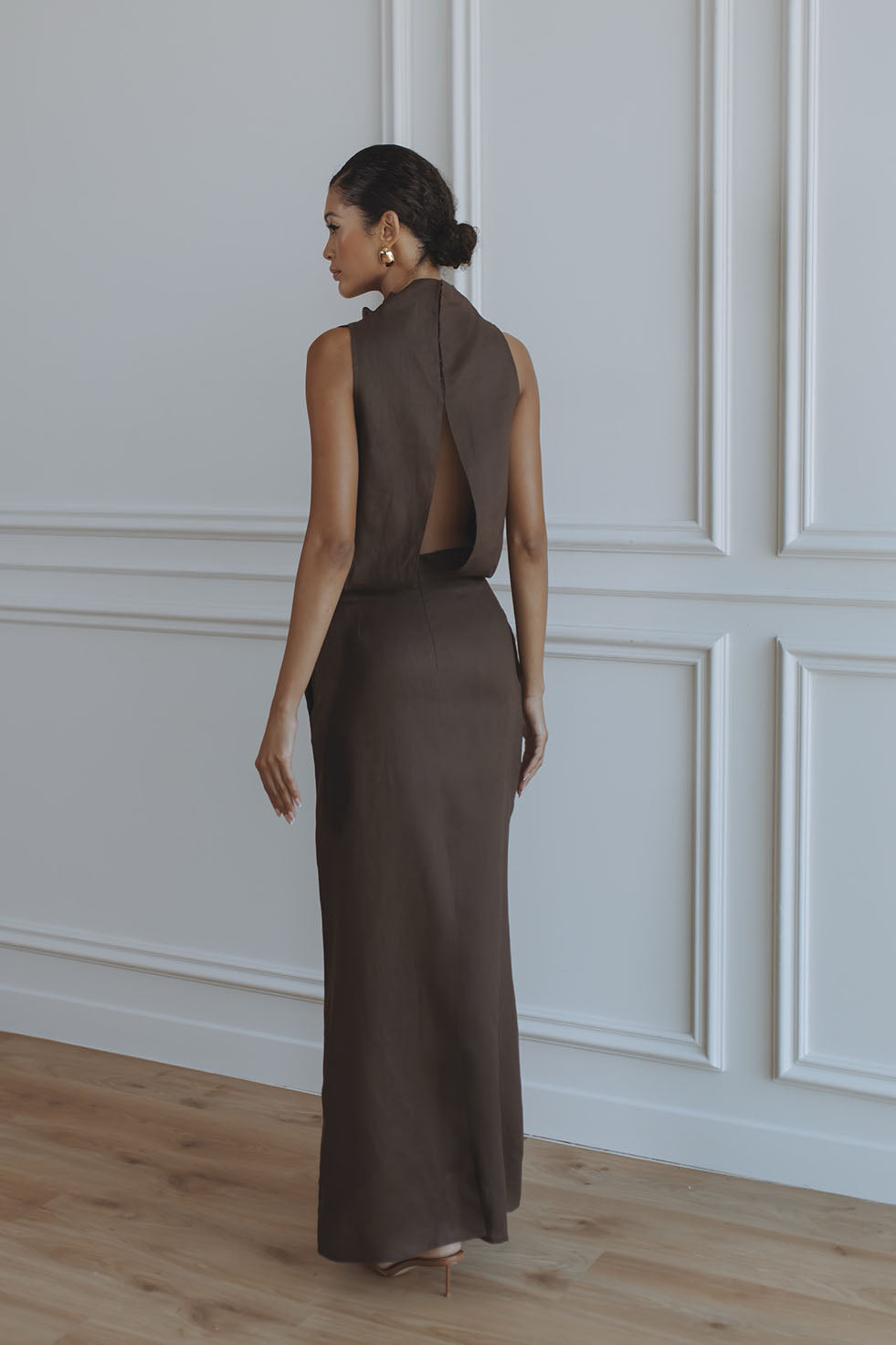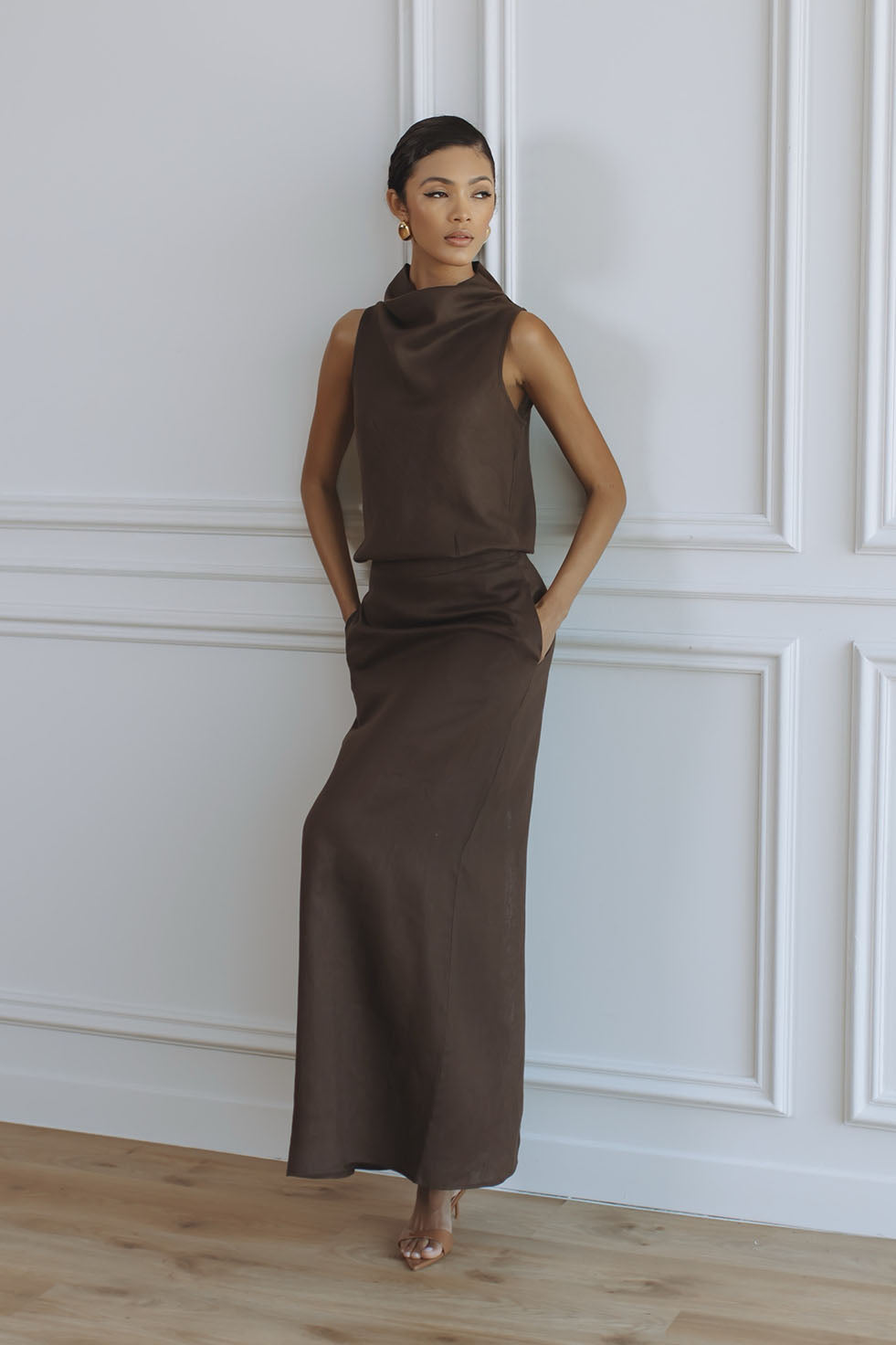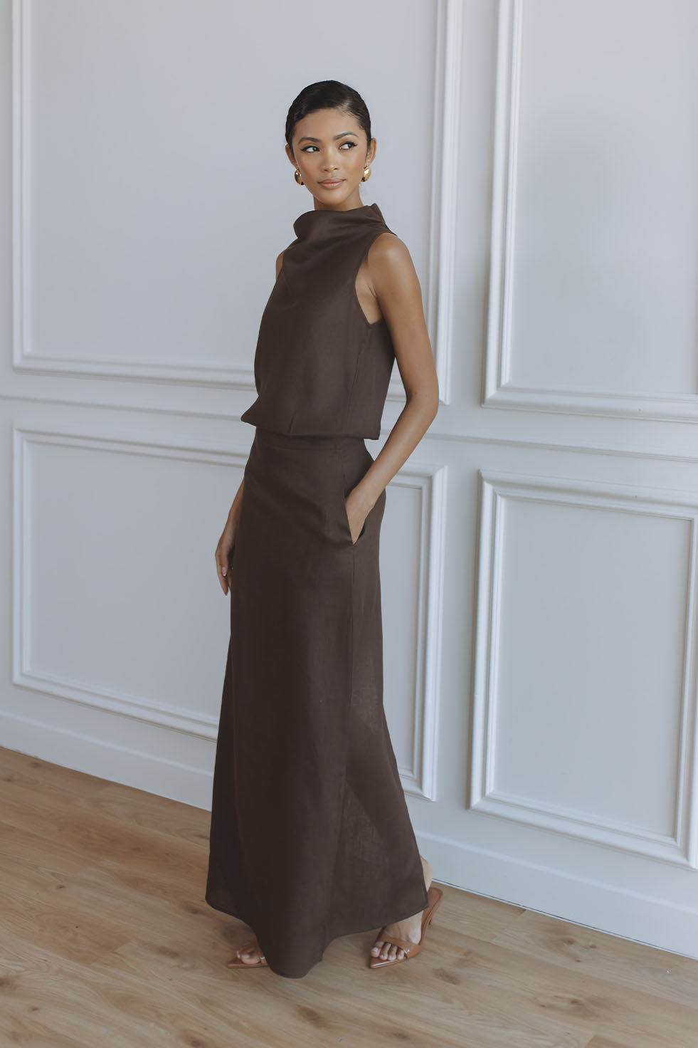 ADELE LINEN MAXI DRESS - BITTER CHOCOLATE