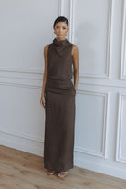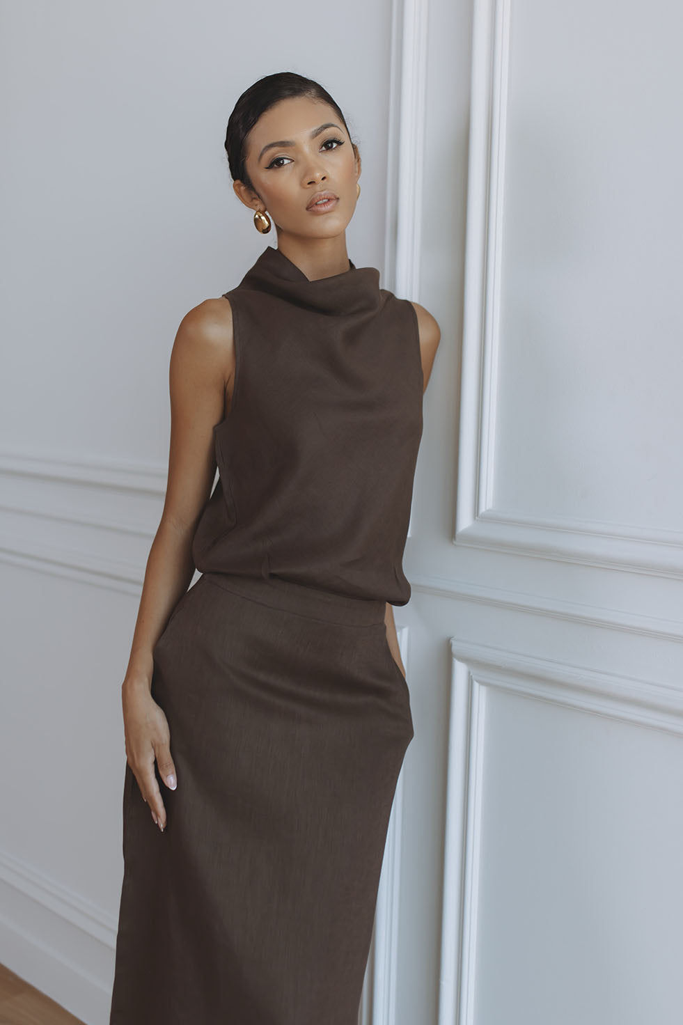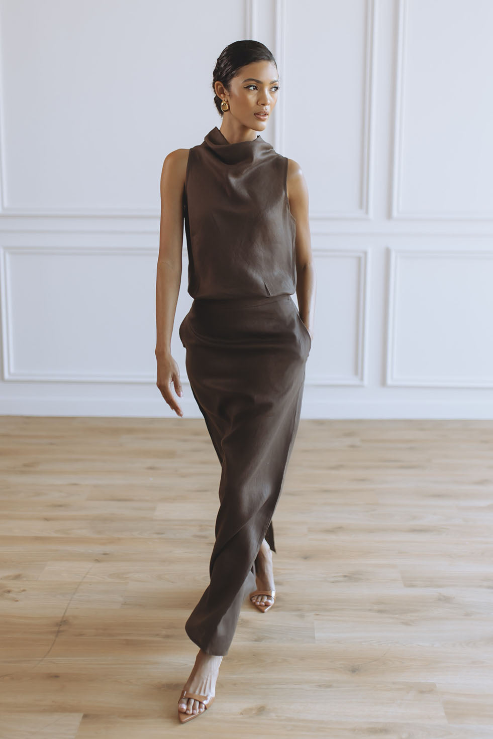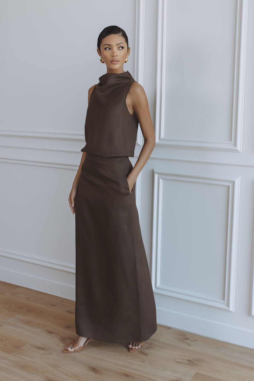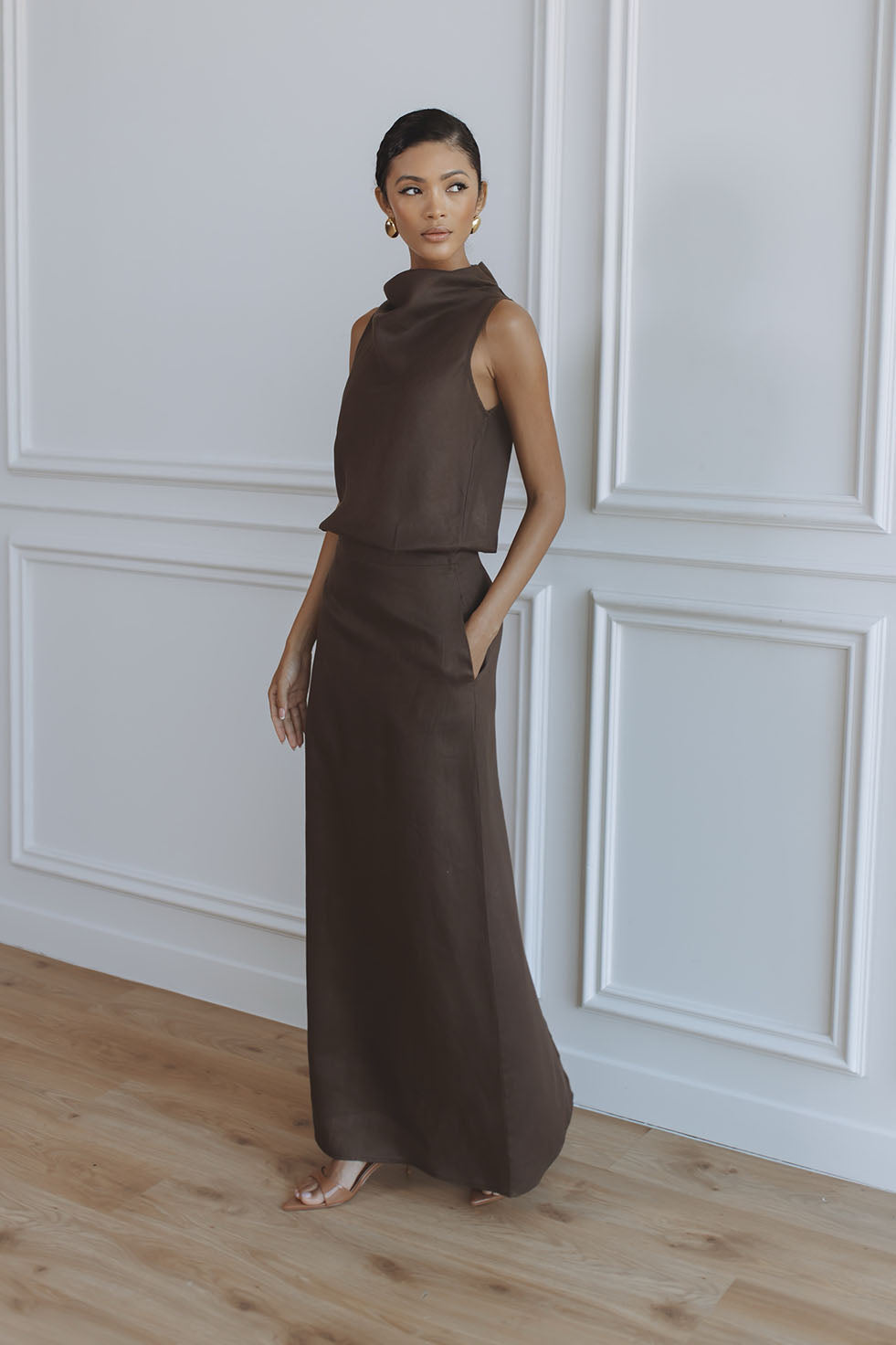 ADELE LINEN MAXI DRESS - BITTER CHOCOLATE