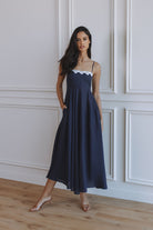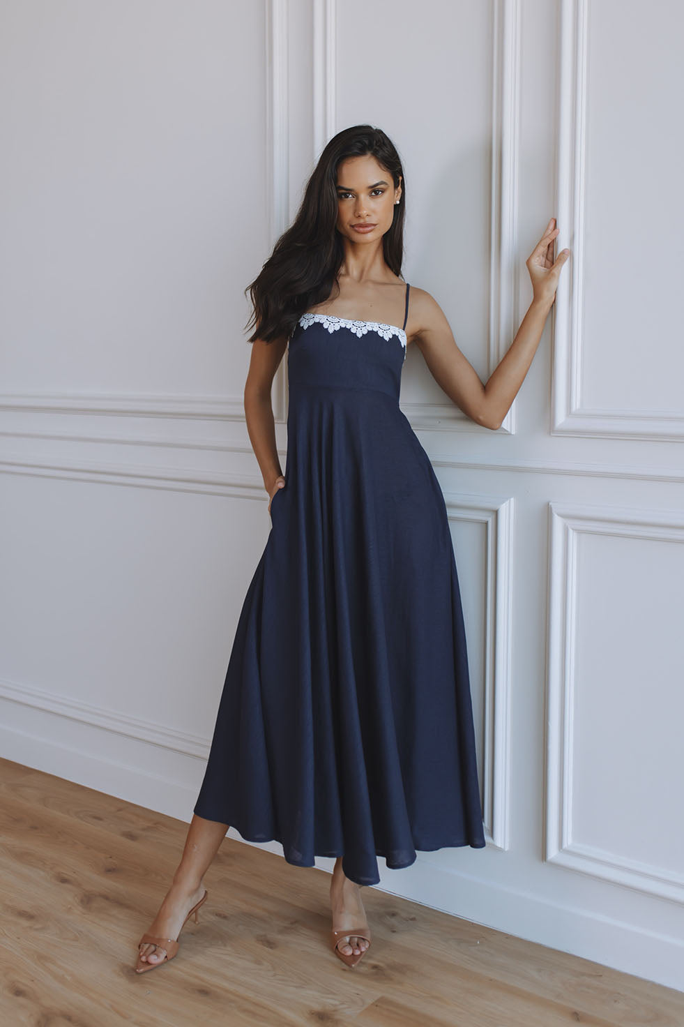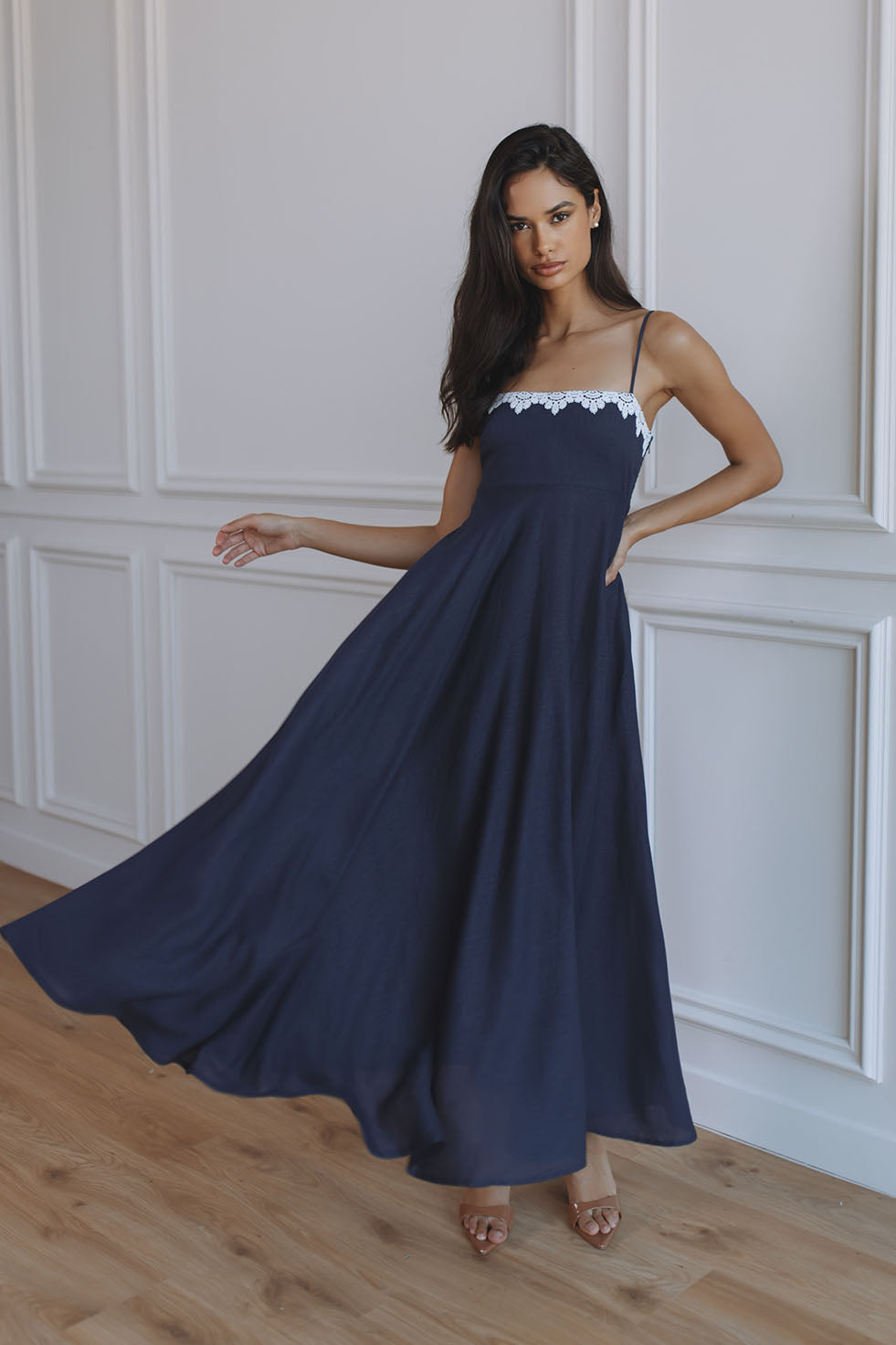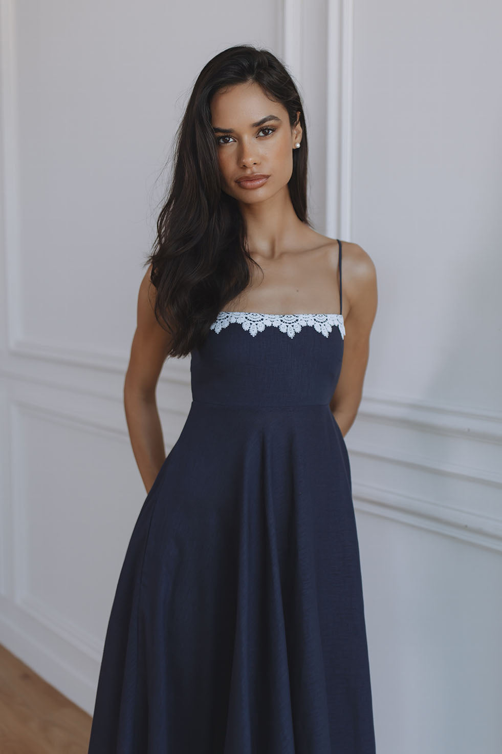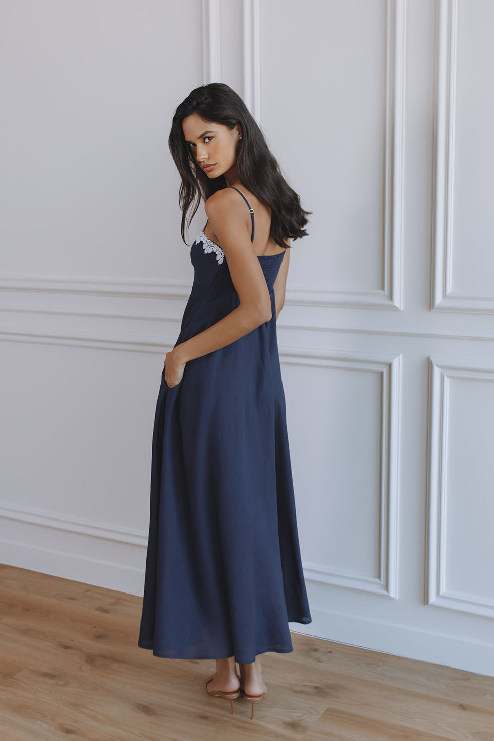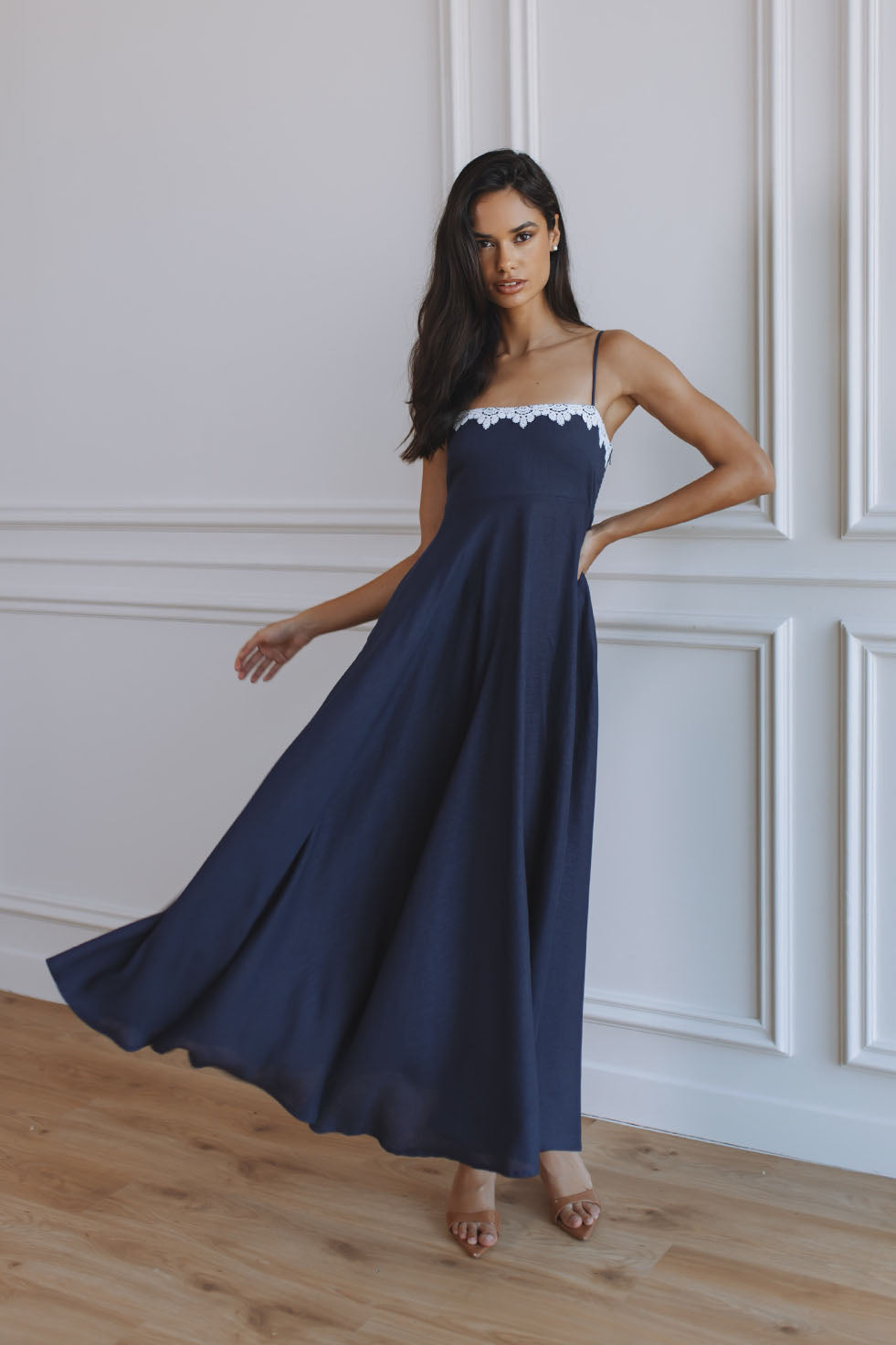 ALIAS LACE LINEN MAXI DRESS - NAVY