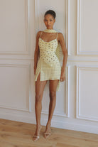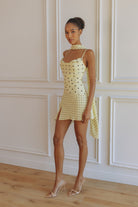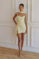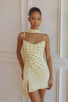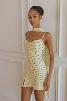 ALORA SCOOP NECK MINI DRESS - LEMON/CHOC POLKA