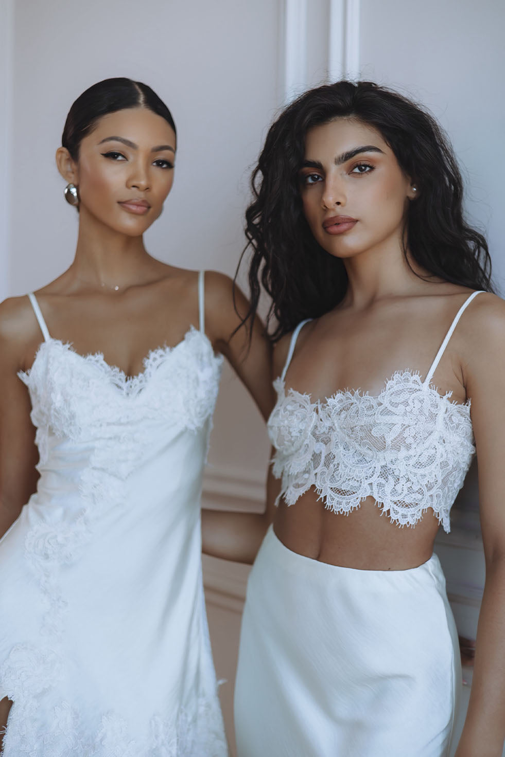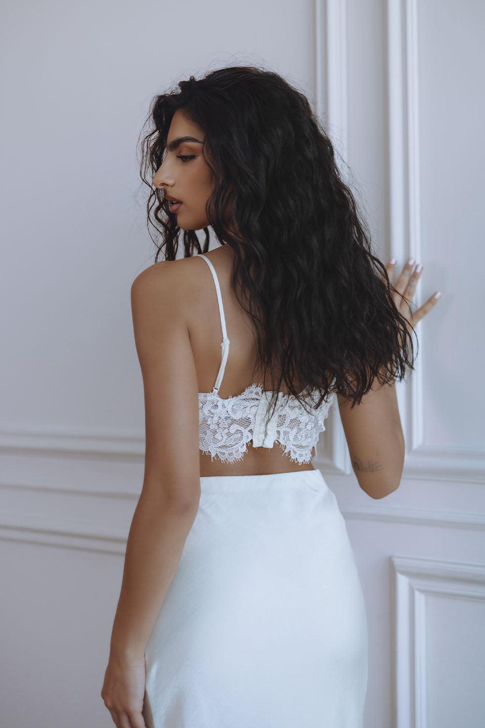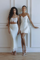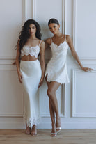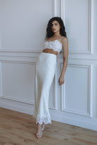 ELISAN LACE SATIN MIDI SKIRT - IVORY