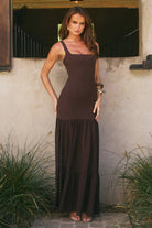 TAHLIA SQUARE NECK MAXI DRESS - BITTER CHOCOLATE
