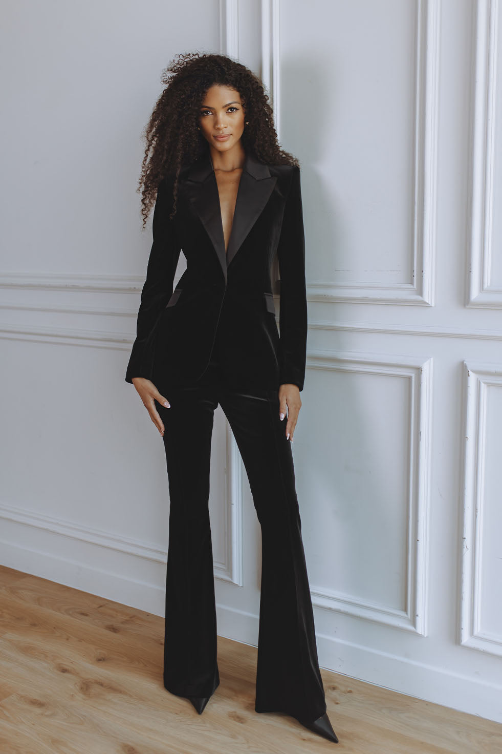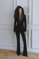 The Voltaire Velvet Blazer is designed to bring refined evening glamour into a modern, structured silhouette. Crafted from a plush, soft-touch velvet, it features strong shoulders, a tapered waist, and sleek satin lapels that add depth and dimension. Fully lined for comfort and finish, it’s the perfect piece to elevate your evening wardrobe