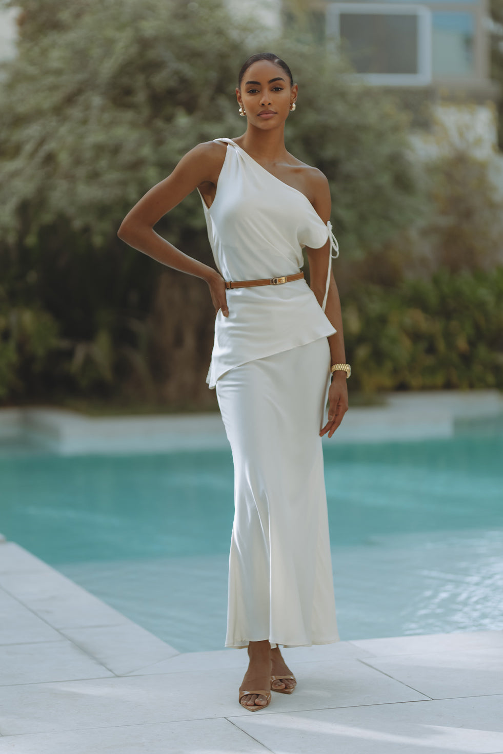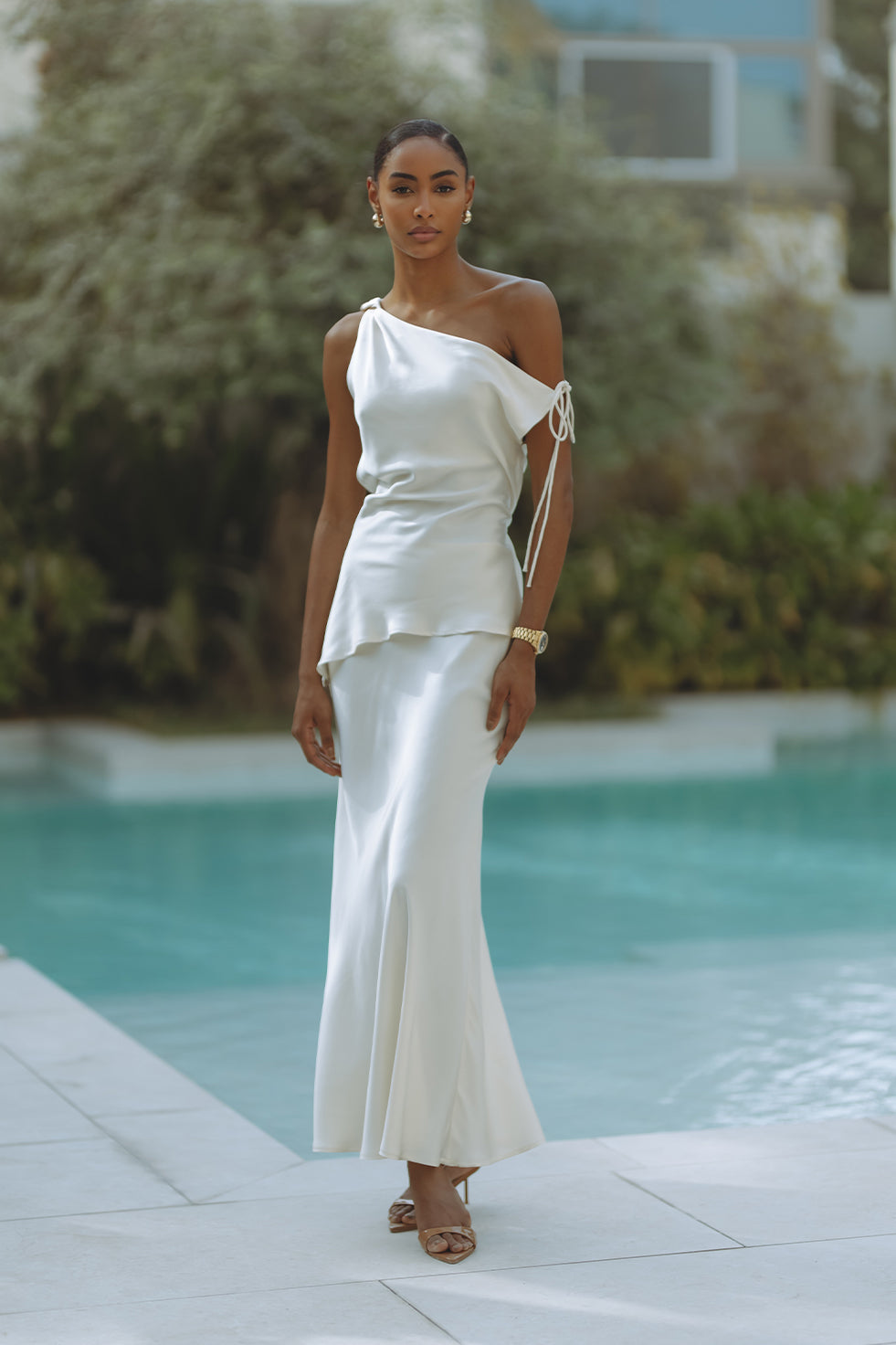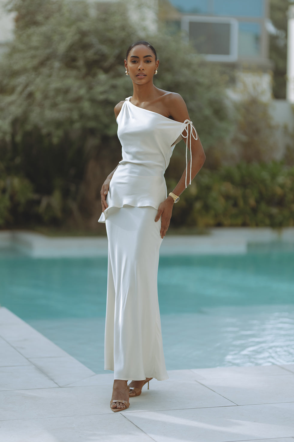 DARCY SATIN MAXI SKIRT - OFF WHITE