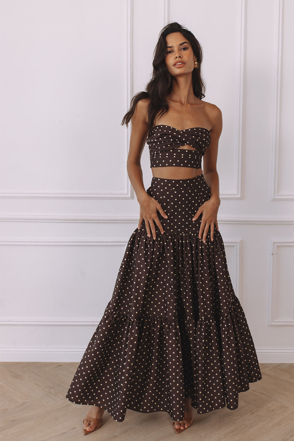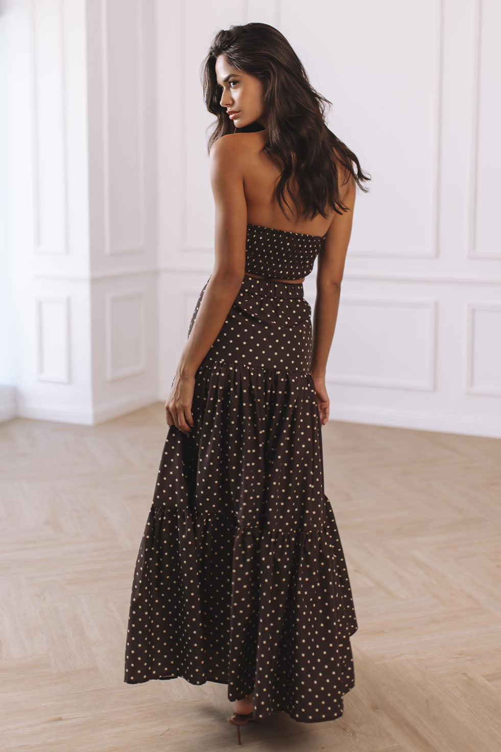 AYLA TIERED MAXI SKIRT - CHOC/LEMON POLKA