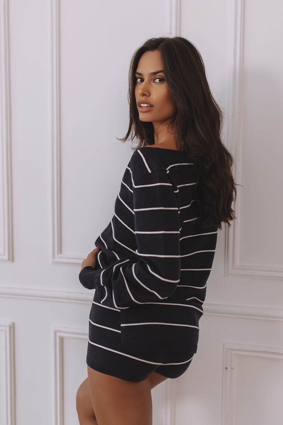 ELEONORA KNIT HOT SHORTS - NAVY STRIPE