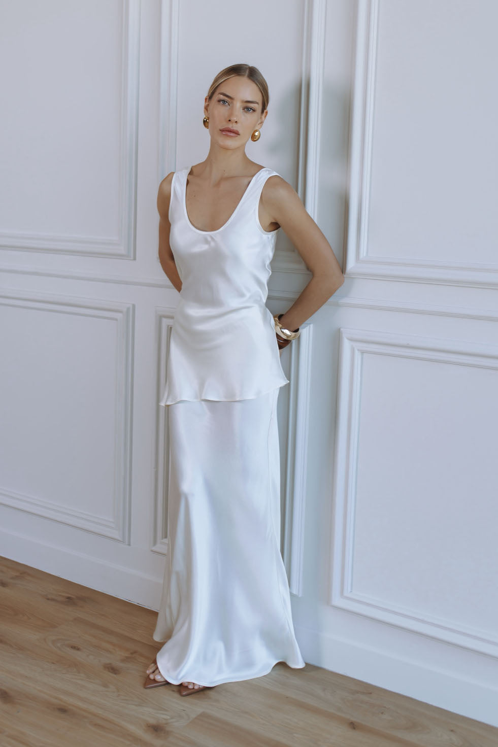 ELIZA SCOOP NECK SATIN TOP - PEARL WHITE