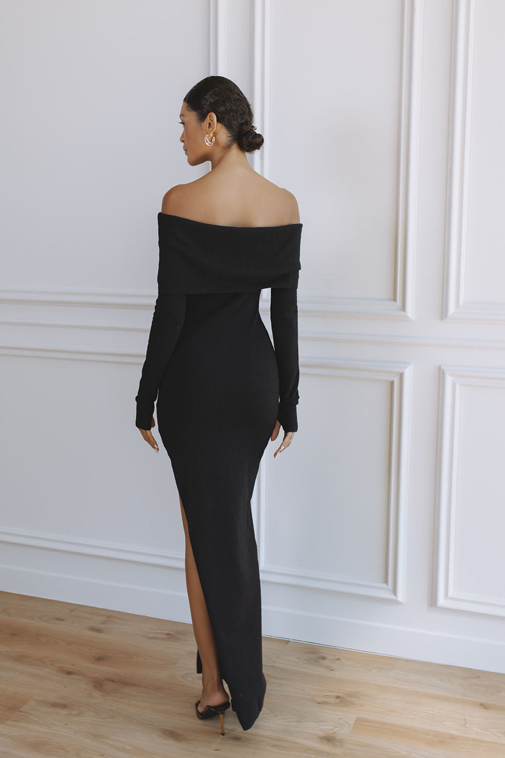 BARLY OFF SHOULDER KNIT MAXI DRESS - BLACK