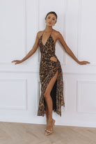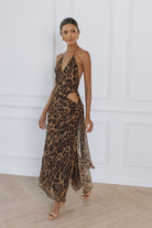 CYREL PRINTED MAXI DRESS - BROWN LEOPARD