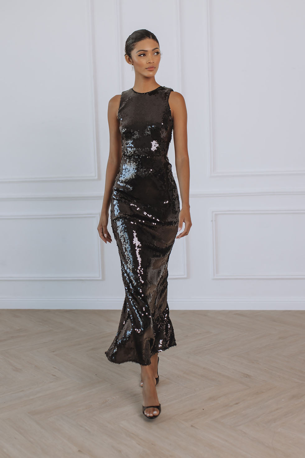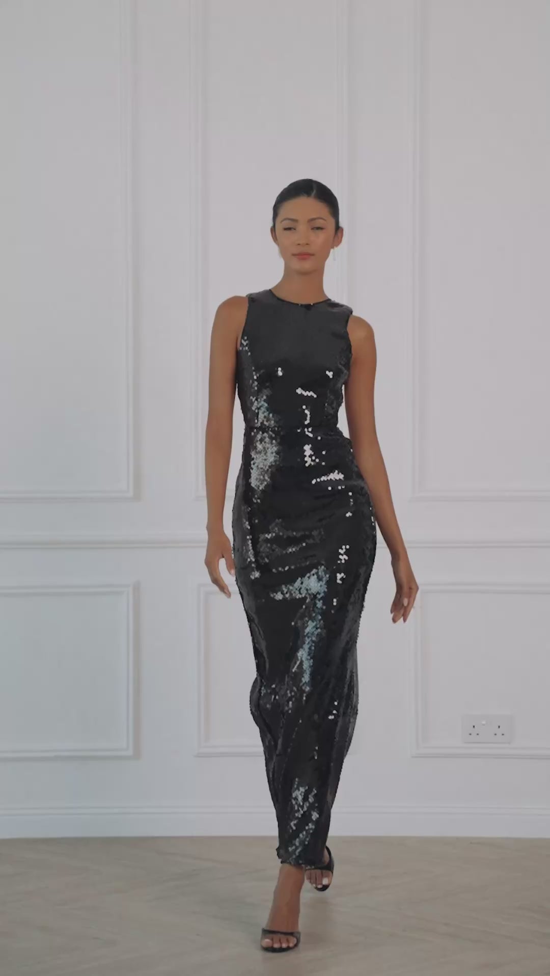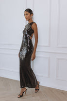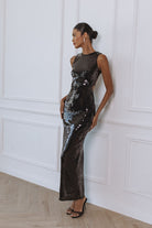 PORTIA SEQUIN MAXI DRESS - BLACK